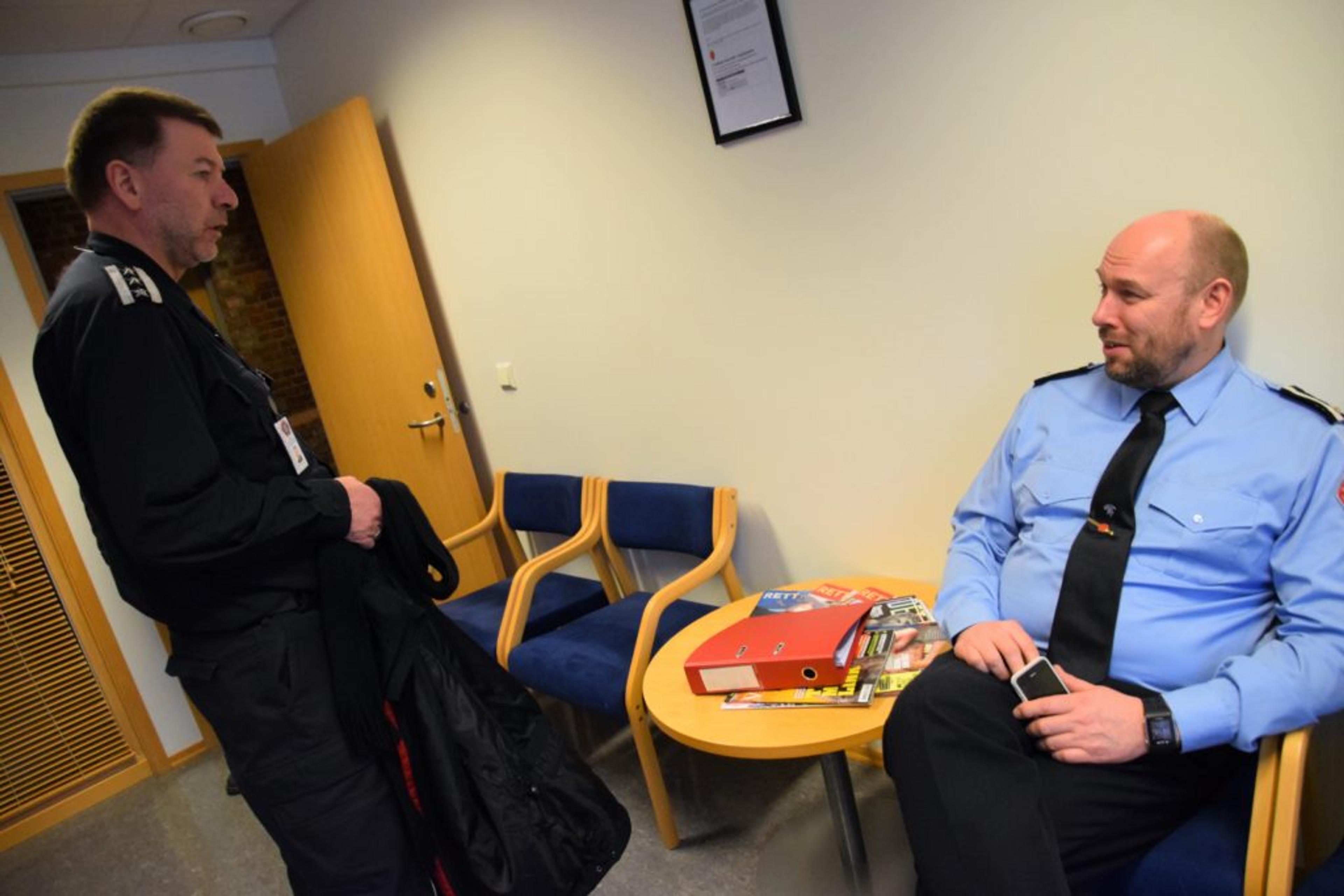 BRANNSJEF OG BRANNINGENIØR: Brannsjef Per Olav Pettersen og branningeniør Jarle Steinnes inntok i dag vitneboksen i Revac-rettssaken. Foto: Stian Ormestad.