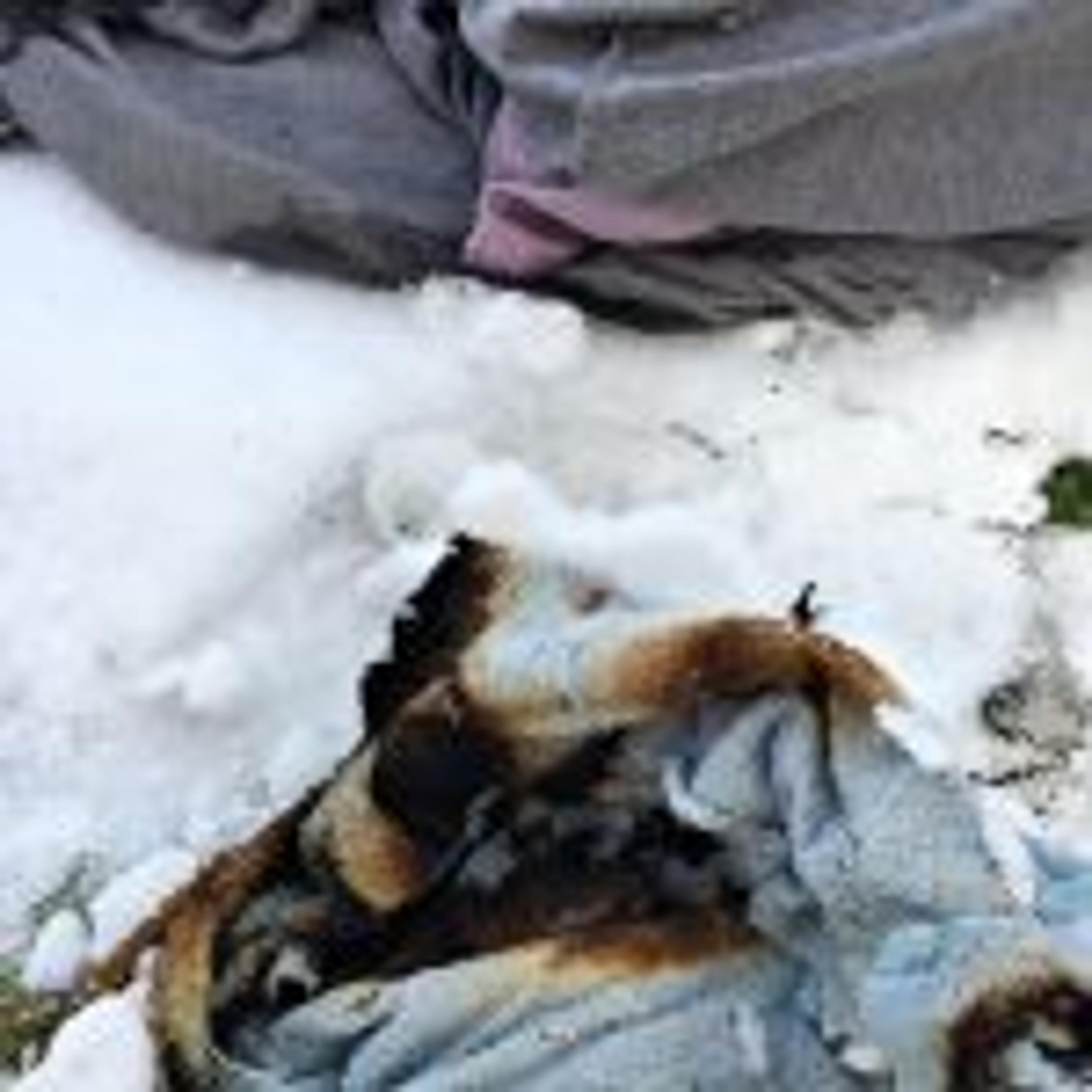 SLOKKA I SNØEN: Tekstilene som brant ble slengt ut i snøen. Foto: VIB.