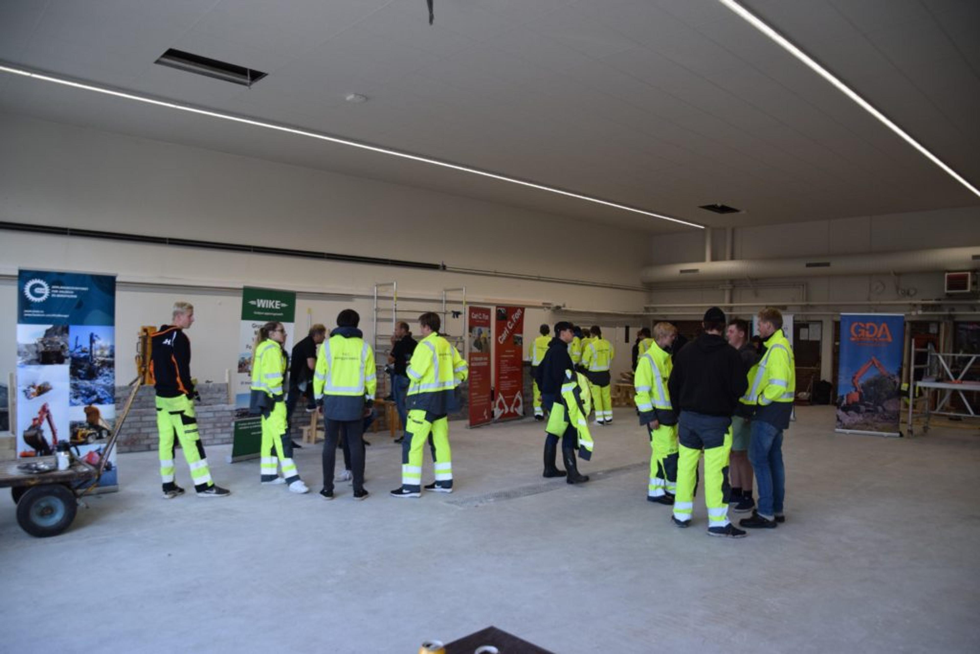 MINGLING: Re VGS-elevene var ivrig på å benytte seg av muligheten til å spørre og grave, når et titalls bedrifter fra anleggsbransjen kom på besøk tirsdag 18. september 2018. Foto: Stian Ormestad.