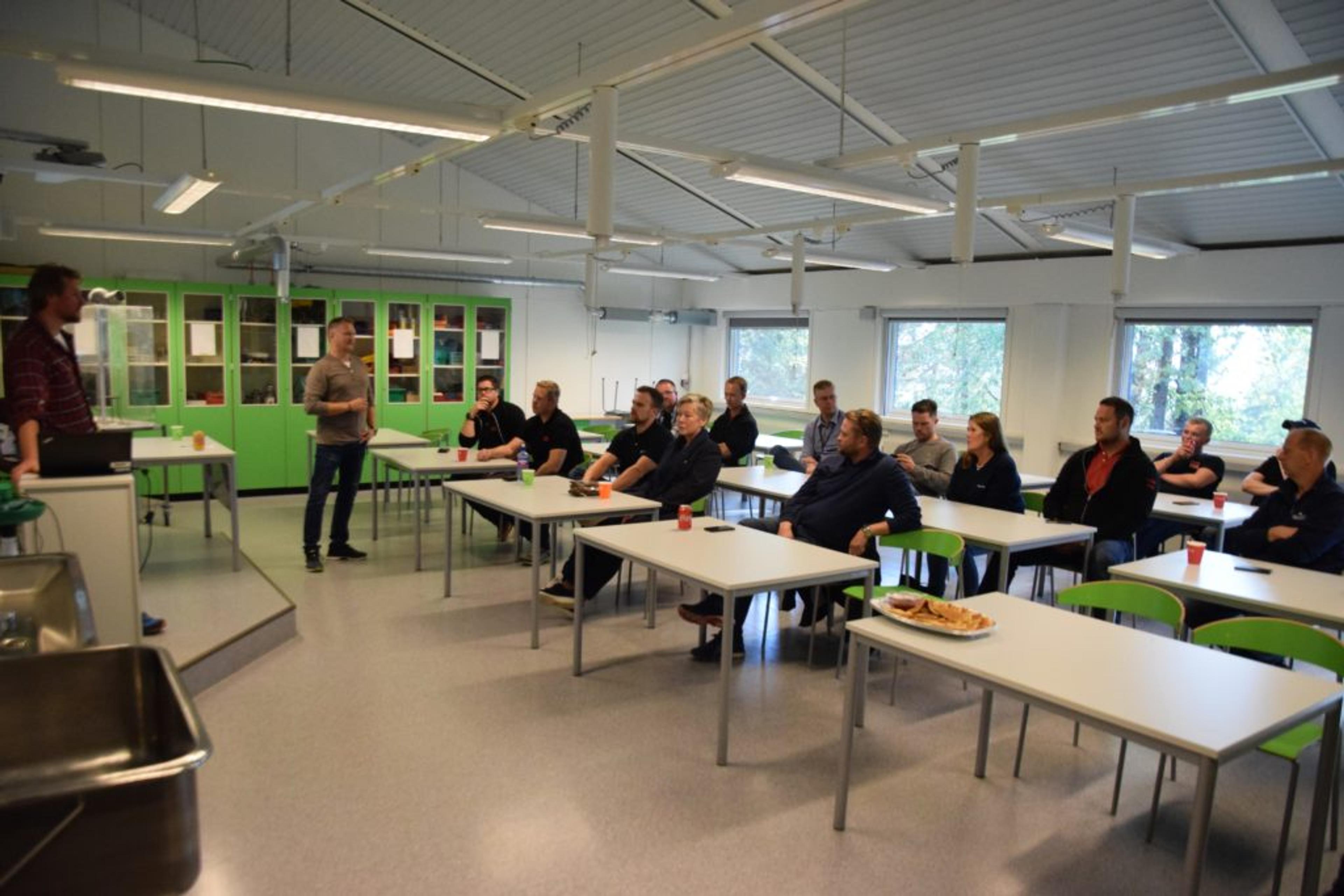BRANSJETREFF PÅ RE VGS: Re VGS-ansatte forteller om hva som gjøres ved skolen, og får innspill fra bransjen om hva som kan bli enda bedre ved anleggslinja. Foto: Stian Ormestad.