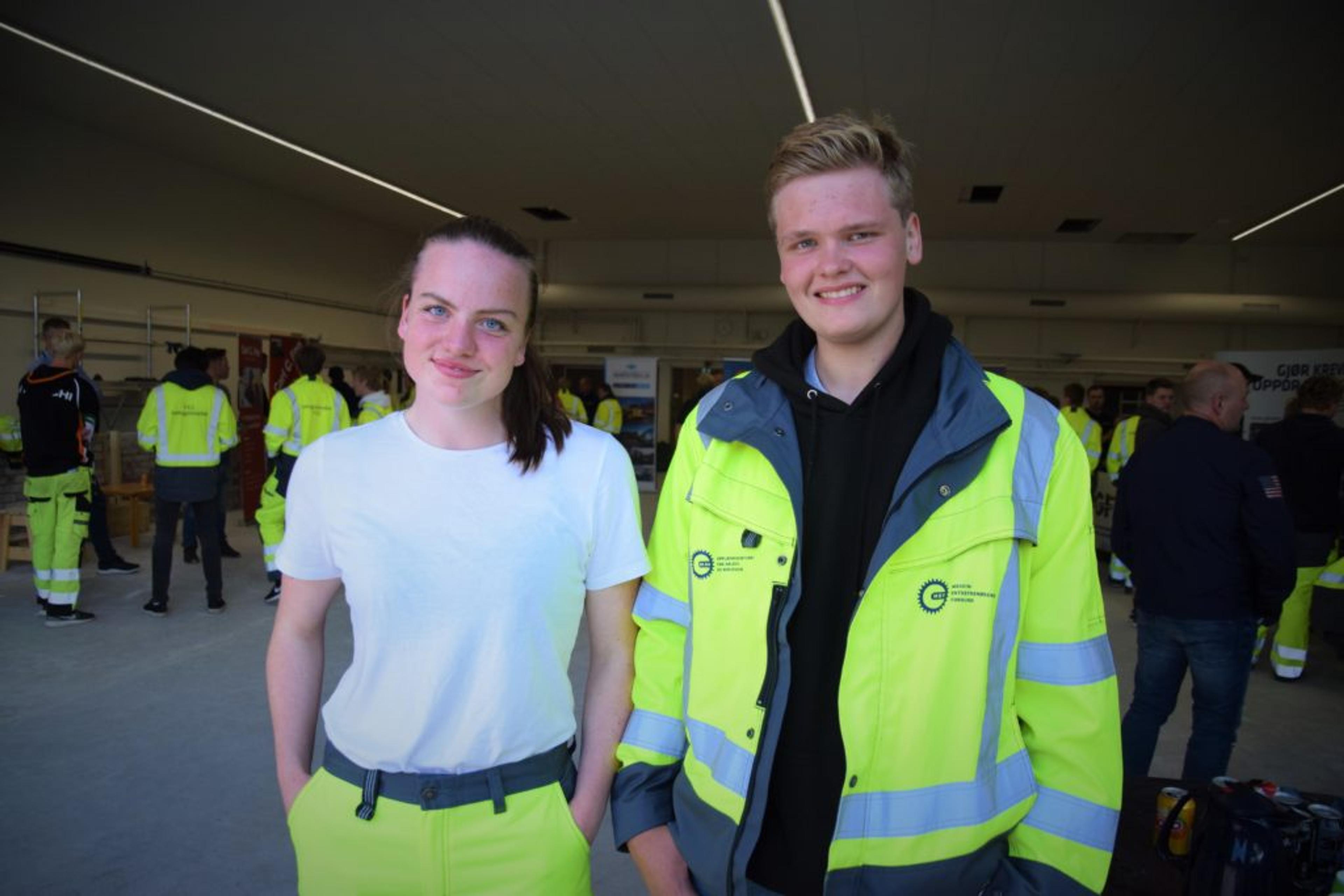 UTPLASSERT: Emilie Nilsen (17) fra Kvelde er hos Gjerden fjellsikring og Phillip Hegg Myhre (16) fra Fon er hos Wike og co. Foto: Stian Ormestad.