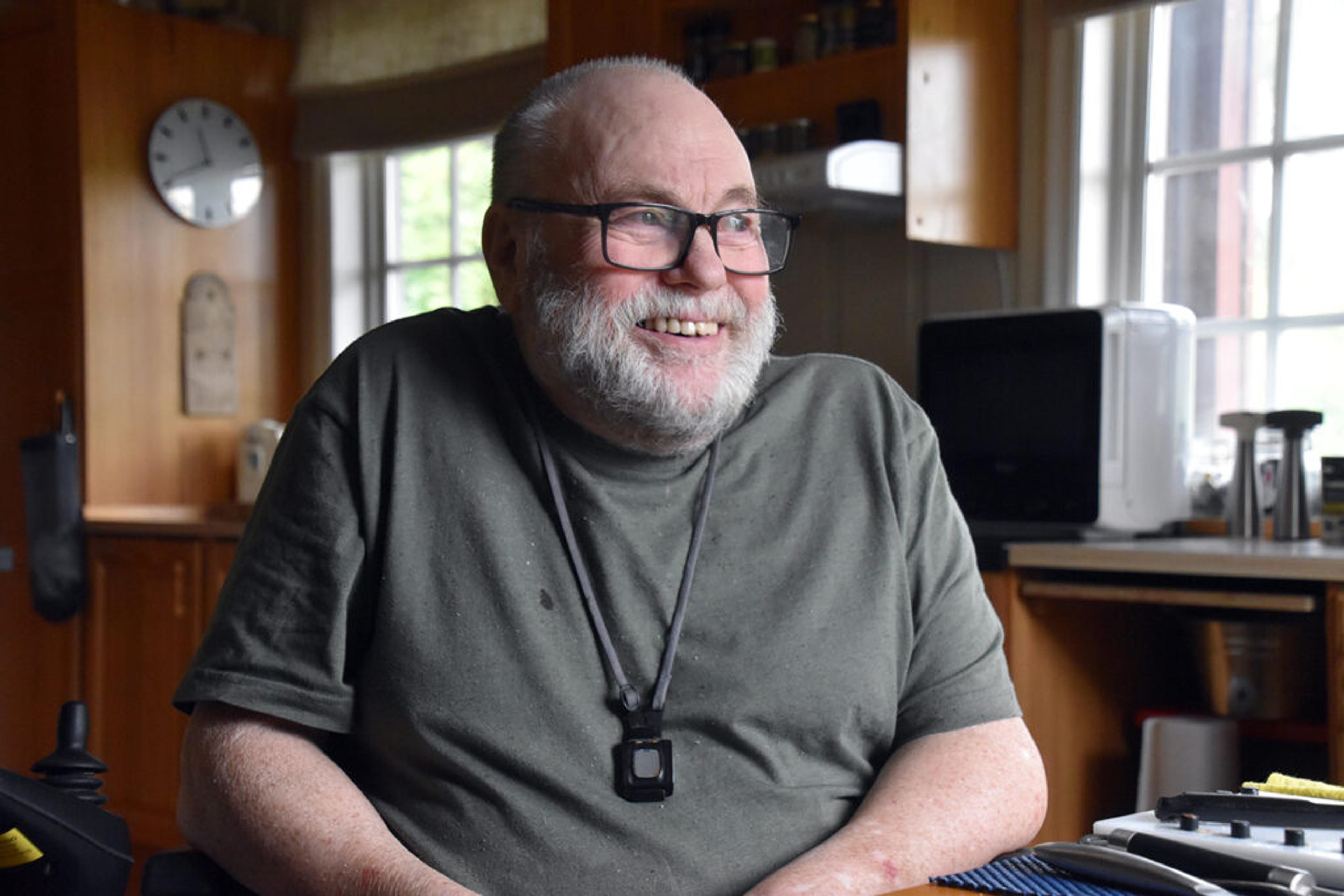 Knut Wiggo har også en alarm han kan trykke på hvis noe skulle gå helt skeis, og da får han hjelp.