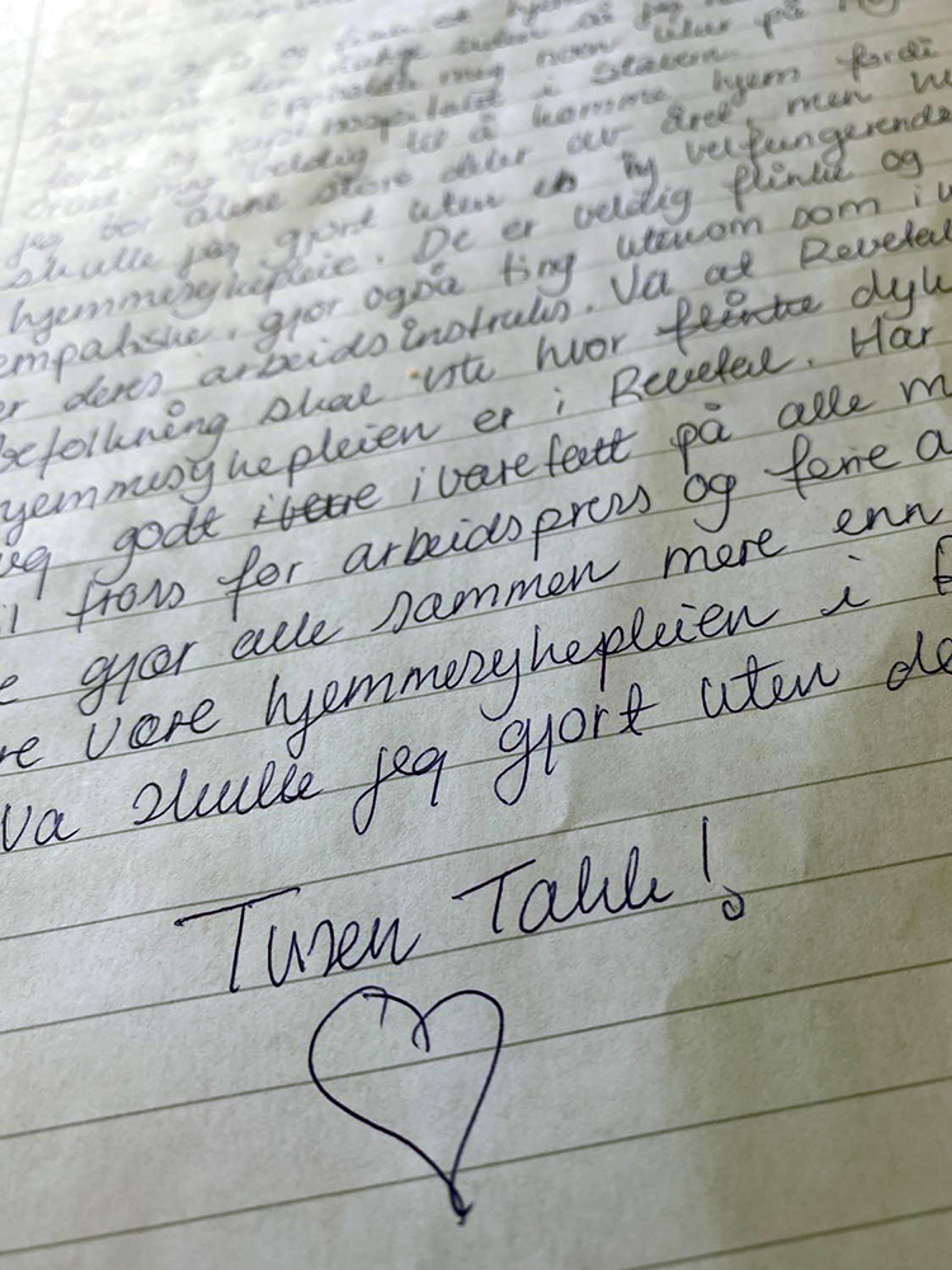 «Grua meg veldig til å komme hjem, fordi jeg bor aleine store deler av året, så hva skulle jeg gjort uten en velfungerende hjemmesjukepleie?