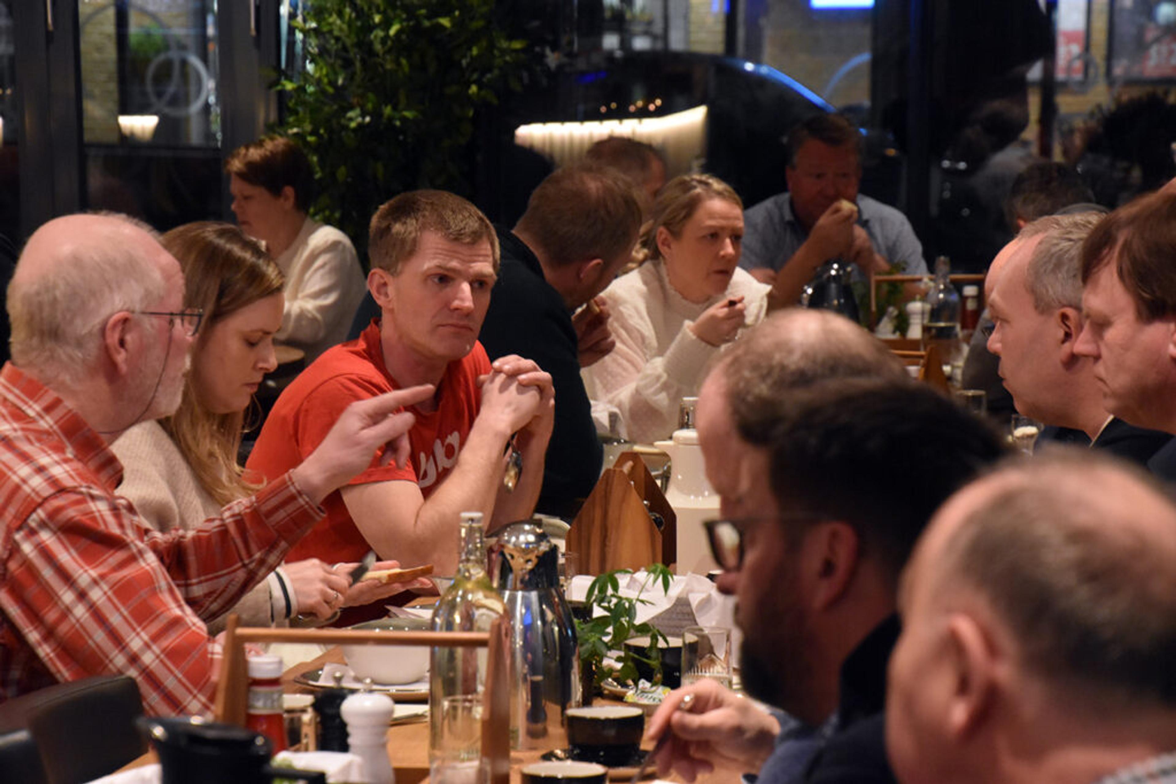 STERKERE SAMMEN: Anders Gustav Holt oppsummerer møtet på Restauranten mandag 27. februar 2023: – Sammen er vi sterkere. Det trengs i 2023, i en storkommune, for å bli sett og hørt her utpå landet. Møtet samla rundt 40 reinger fra idrett-, kultur- og næringsliv. Foto: Stian Ormestad, ReAvisa.