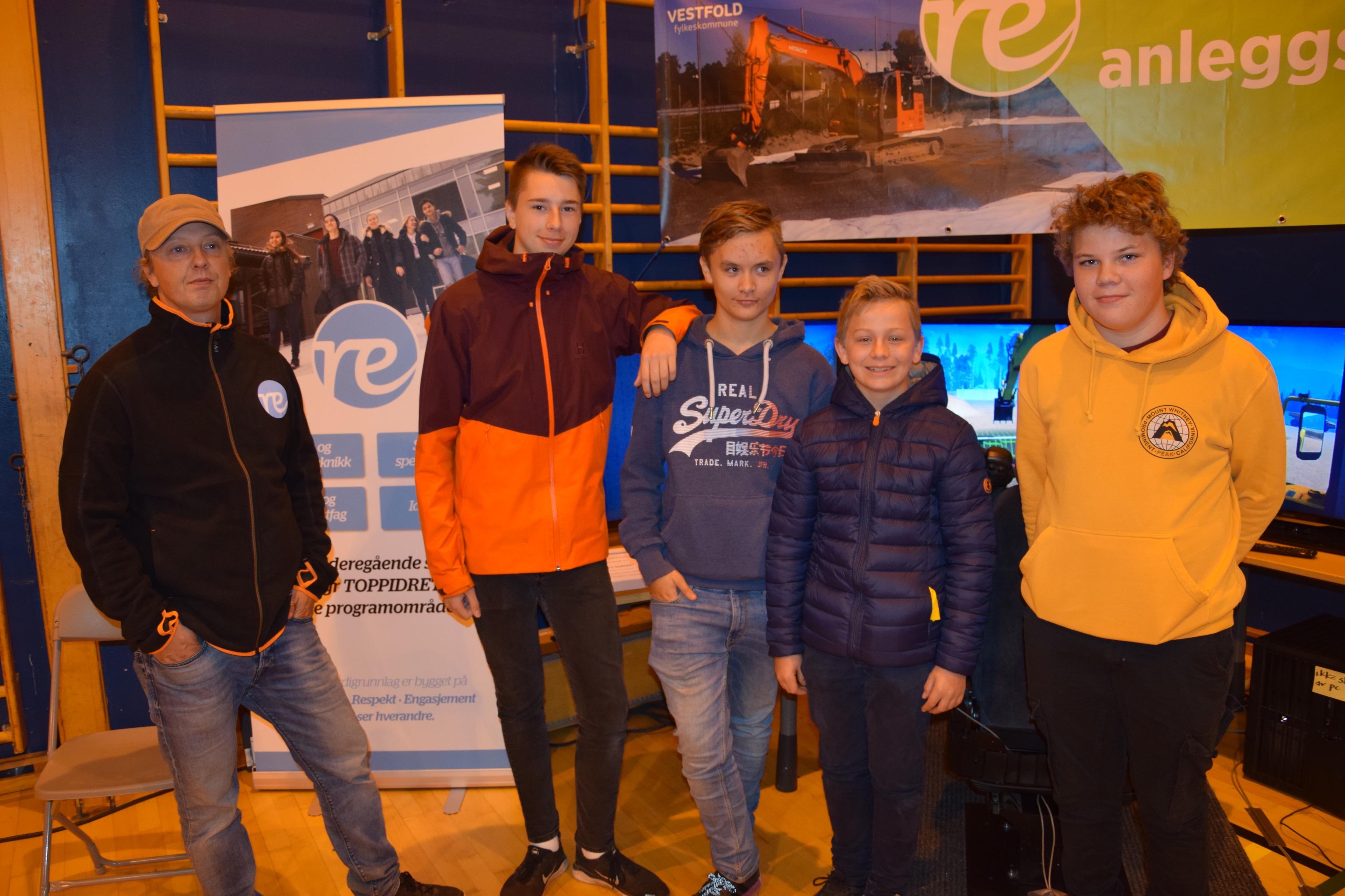 PÅ RE VIDEREGÅENDE SKOLES STAND: Ragnar Kosmo forteller om Re VGS til Gjøklepp-elevene Thomas Skoglund, Knut Sigurd Brekke Rudi, Mats Nygaard og Henrik Riis. Foto: Håkon Westby.