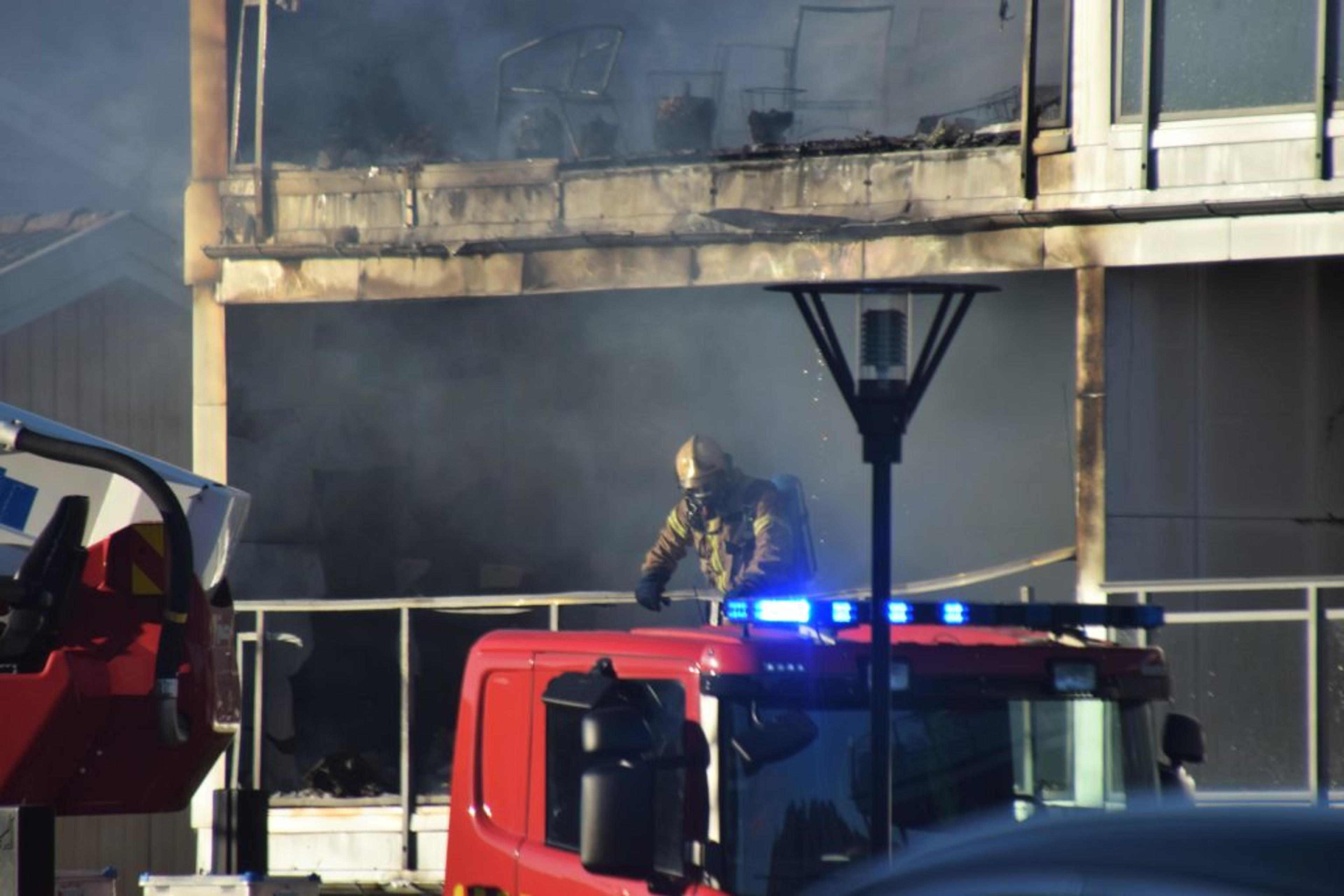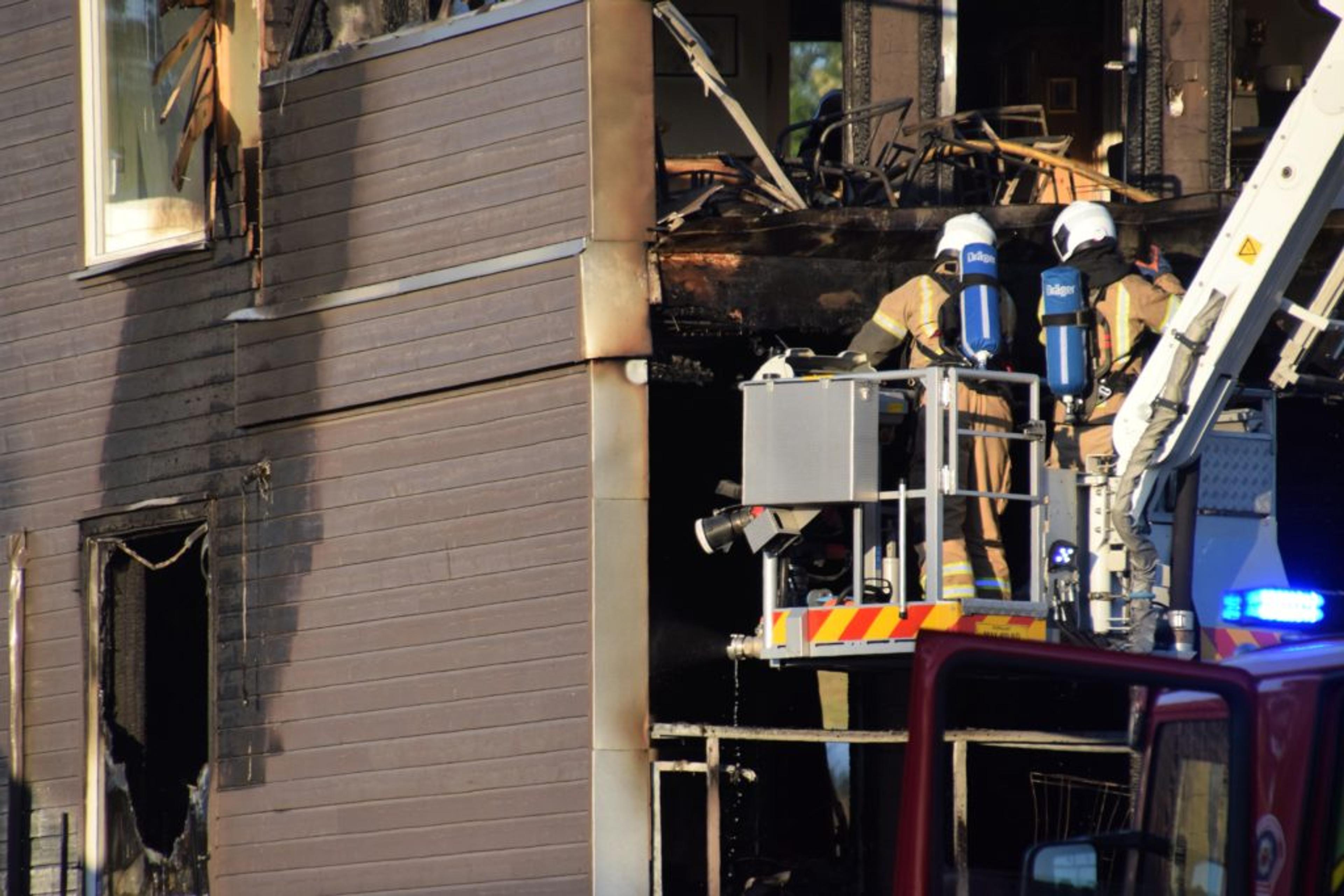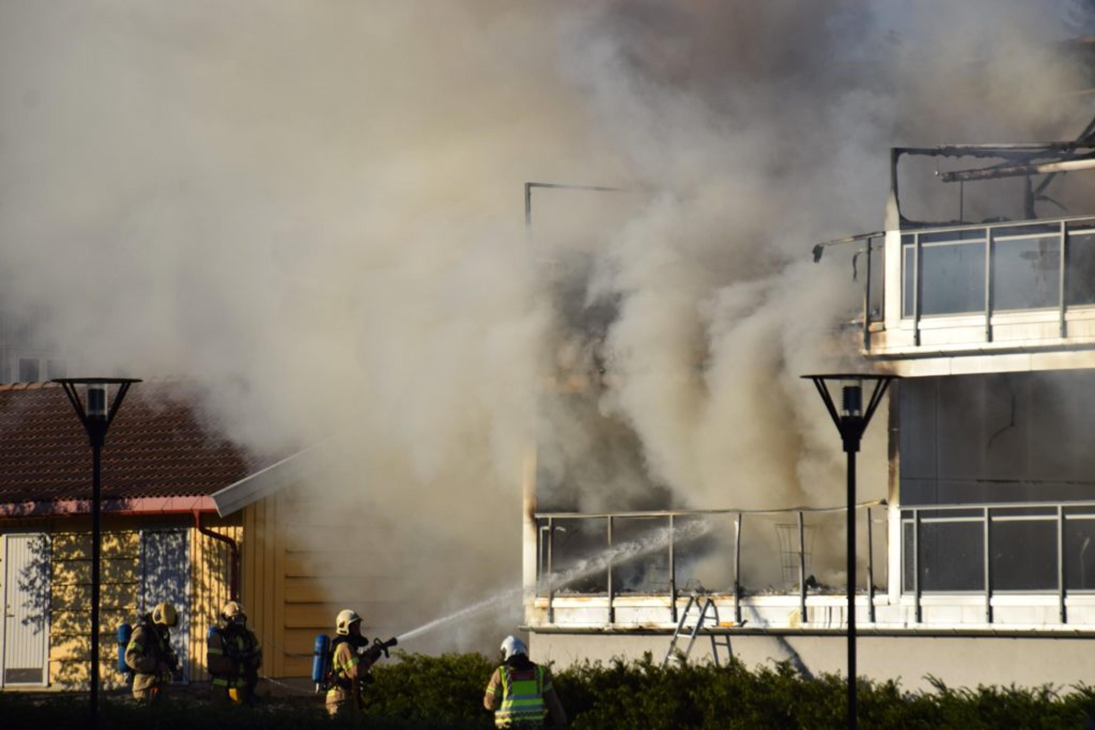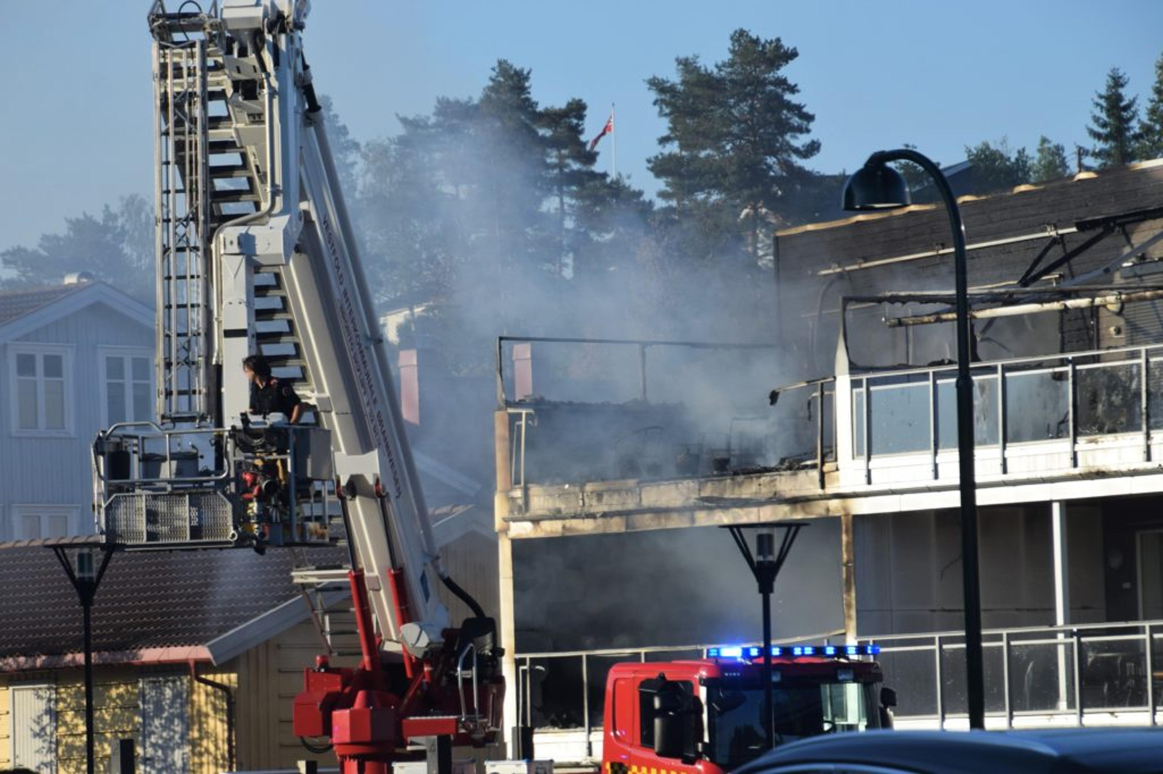 IfølgeTønsbergs Bladmeldte også en beboer i leilighetbygget sjøl ifra til nødetatene da han kom hjem og oppdaga røyk som kjapt utviklet seg til full brann.