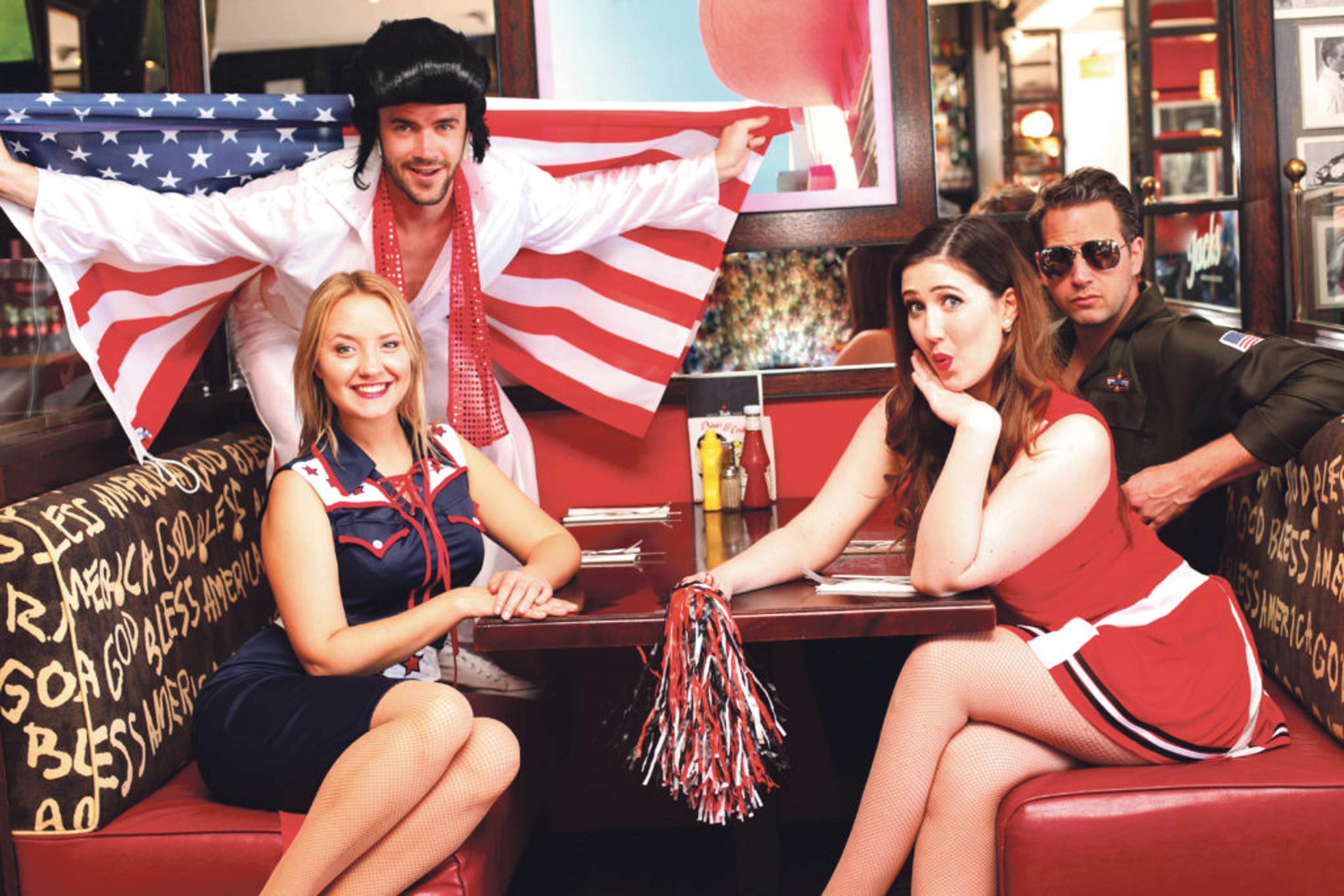 ARTIST: Et bilde av cruisebåt-entertainerne for noen år siden. Charlotte fremst til høyre på bildet. Foto: Privat.