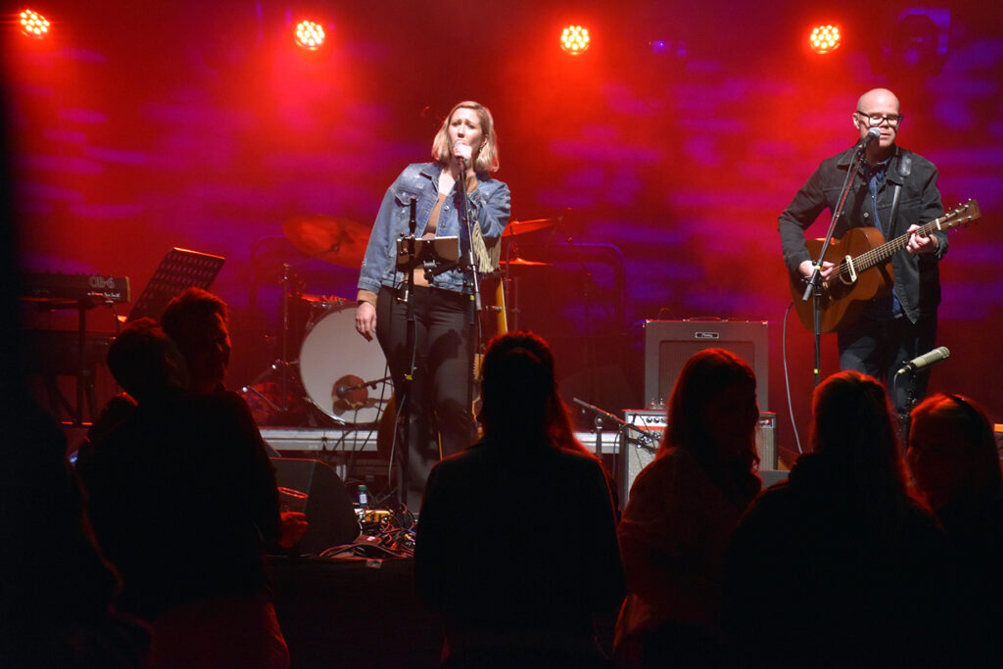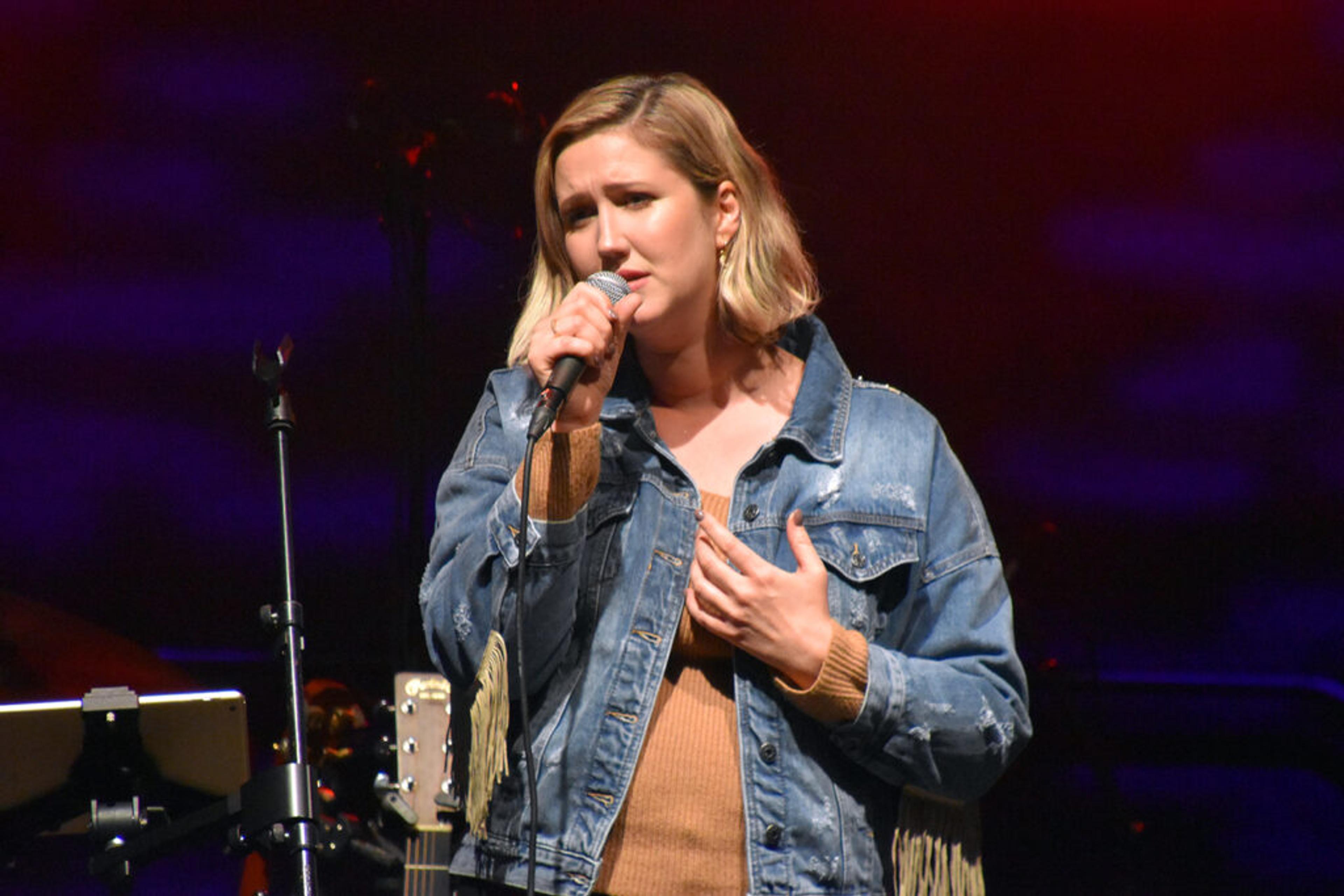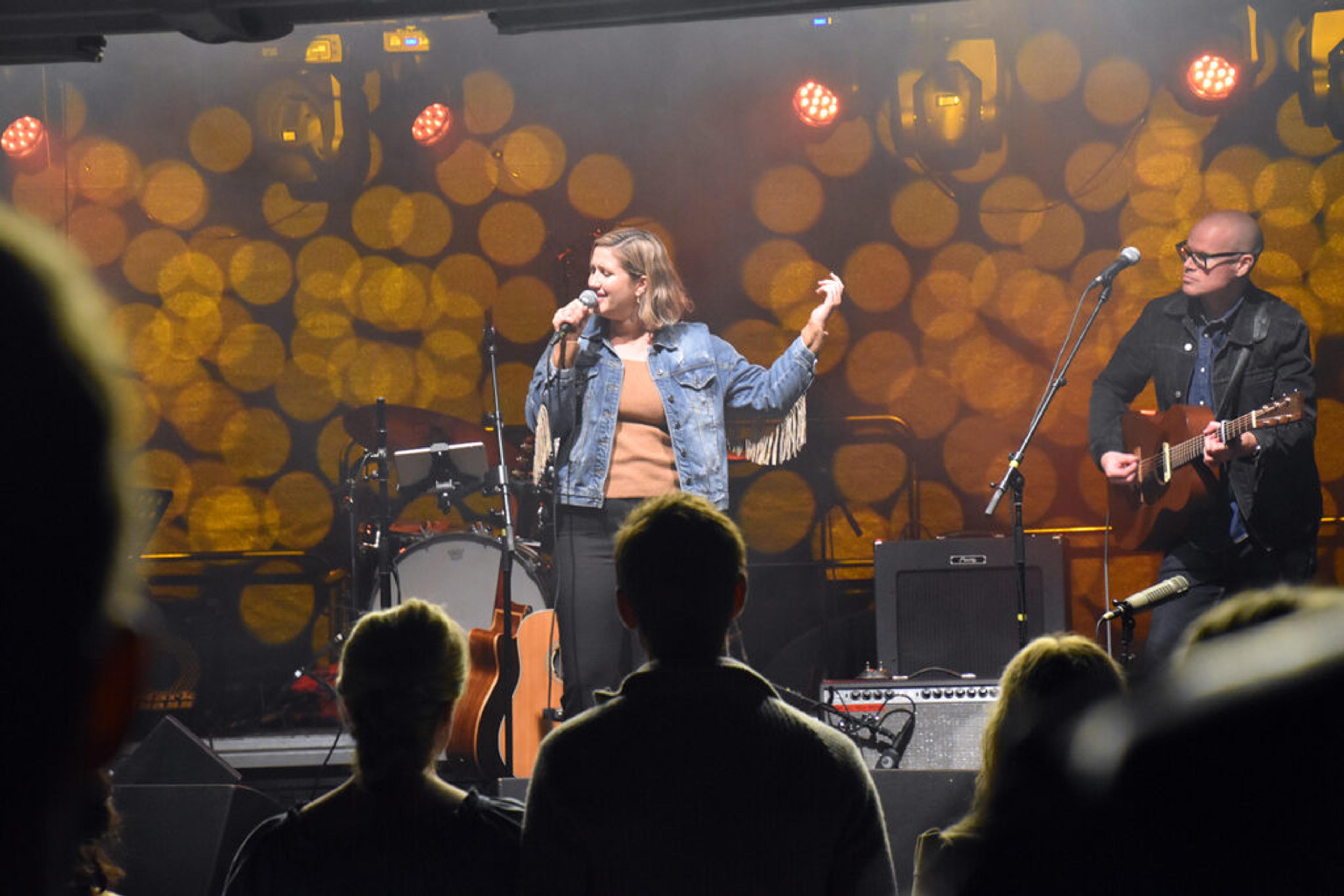 URPREMIERE: Charlotte Sofie Eliassen Holtung (31) sang for aller første gang ei sjølskrivi låt under Re minifestival 2022. Foto: Stian Ormestad.