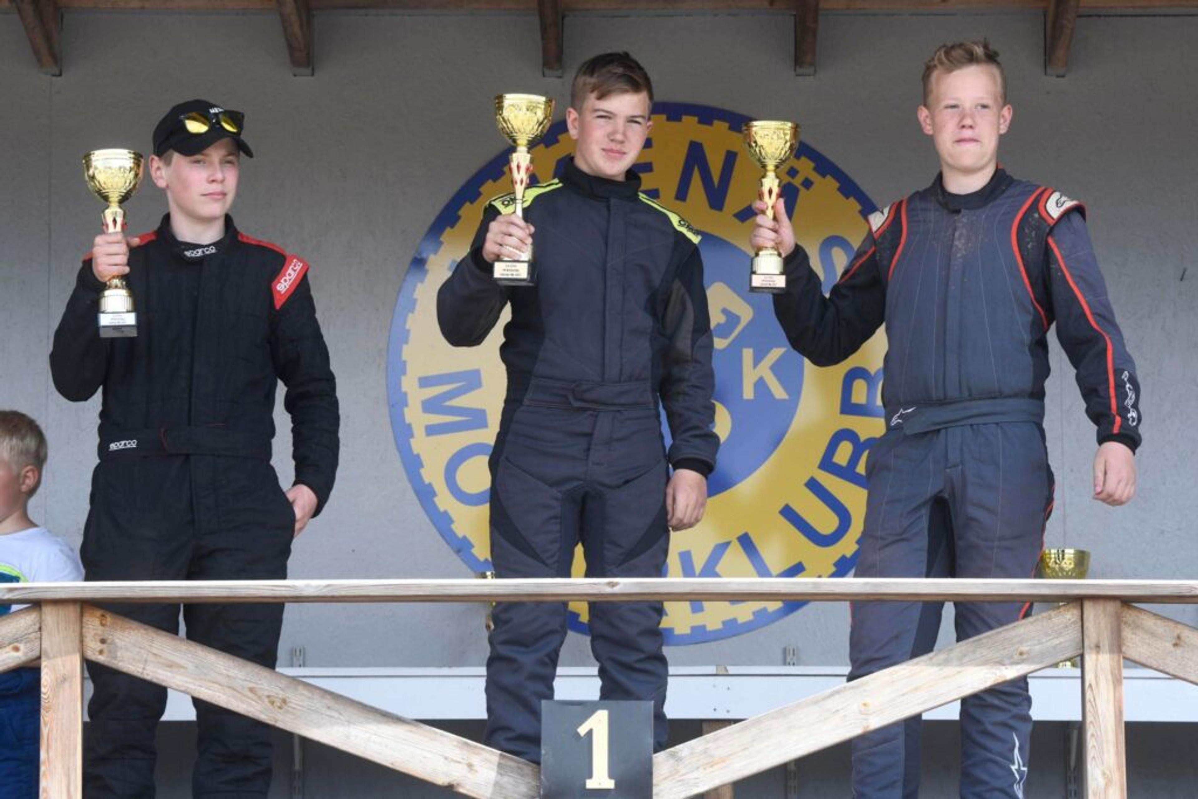 SUVEREN SEIER: Re-gutten vant tilslutt med tredve meters forsprang over målstreken, og det er mye i en motorsport der crosskartene skal gå likt. Foto: Anders Ekstrøm.