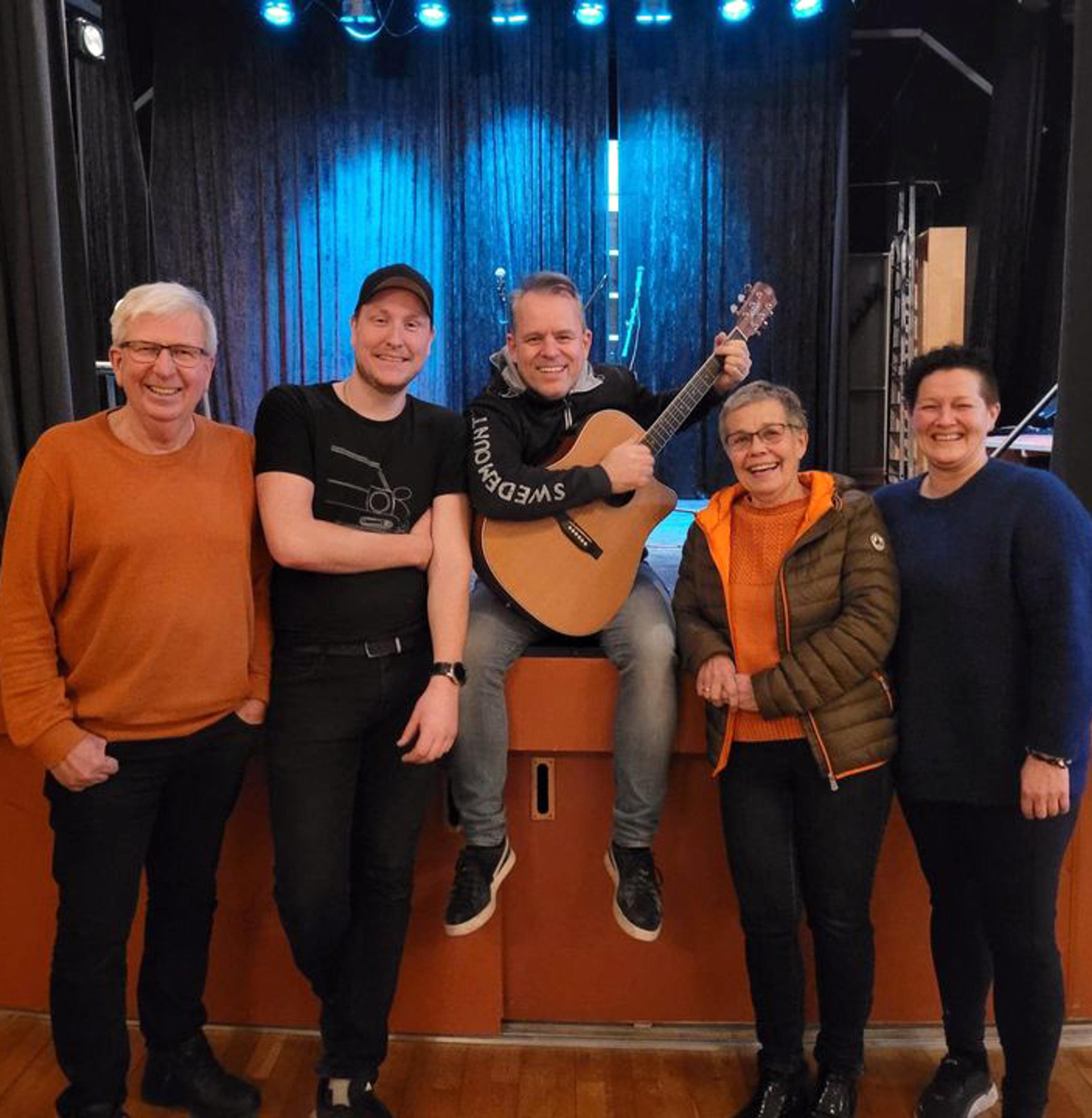 DANSEFRANK OG GJENGEN: Hva med en skikkelig god, gammeldags dansefest på lokalet?, tenkte denne gjengen. Som tenkt, så gjort. Til helga er det stinn brakke på dansefest på Kulturhuset Elverhøy. Foto: Privat.