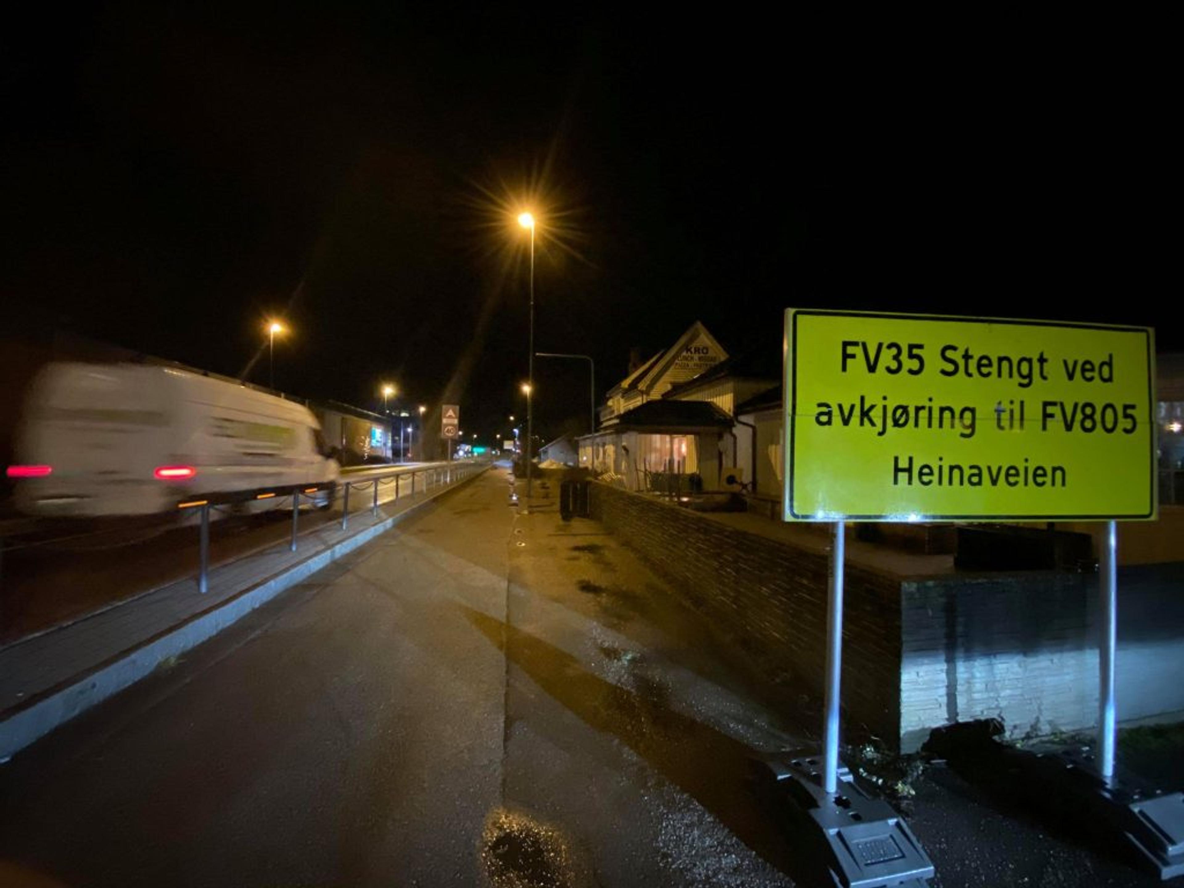 SKRIVELEIF: Både fra Bispeveien og Regata er det skilta omkjøring. Her står det begge steder «Heinaveien». Veien heter Heianveien. Foto: Stian Ormestad.