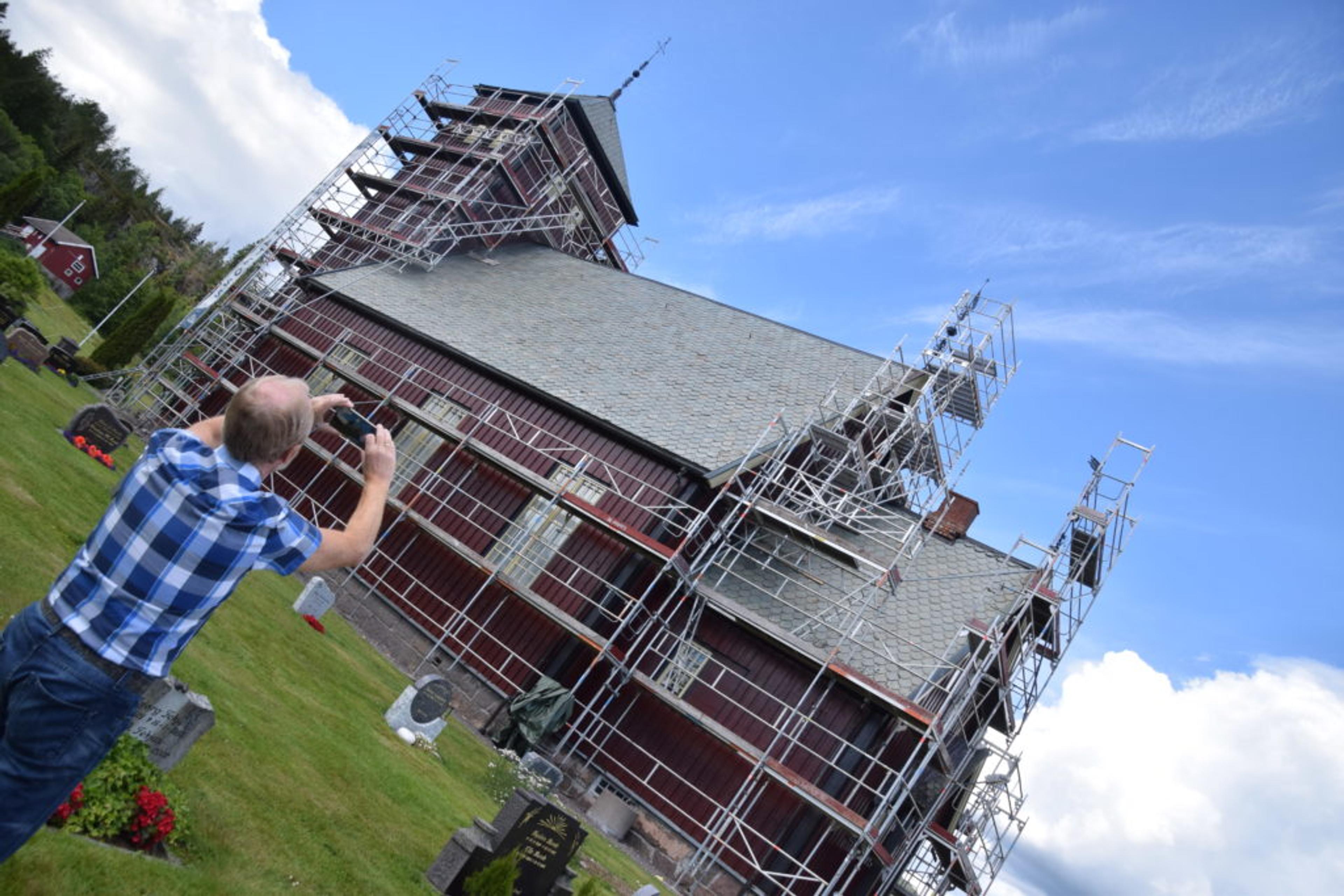 Det sier litt, for også her har det vært midlertidige avstivninger og provisoriske innretninger for å få kirka til å stå stødig i påvente av skikkelig råteskade-reparasjoner.