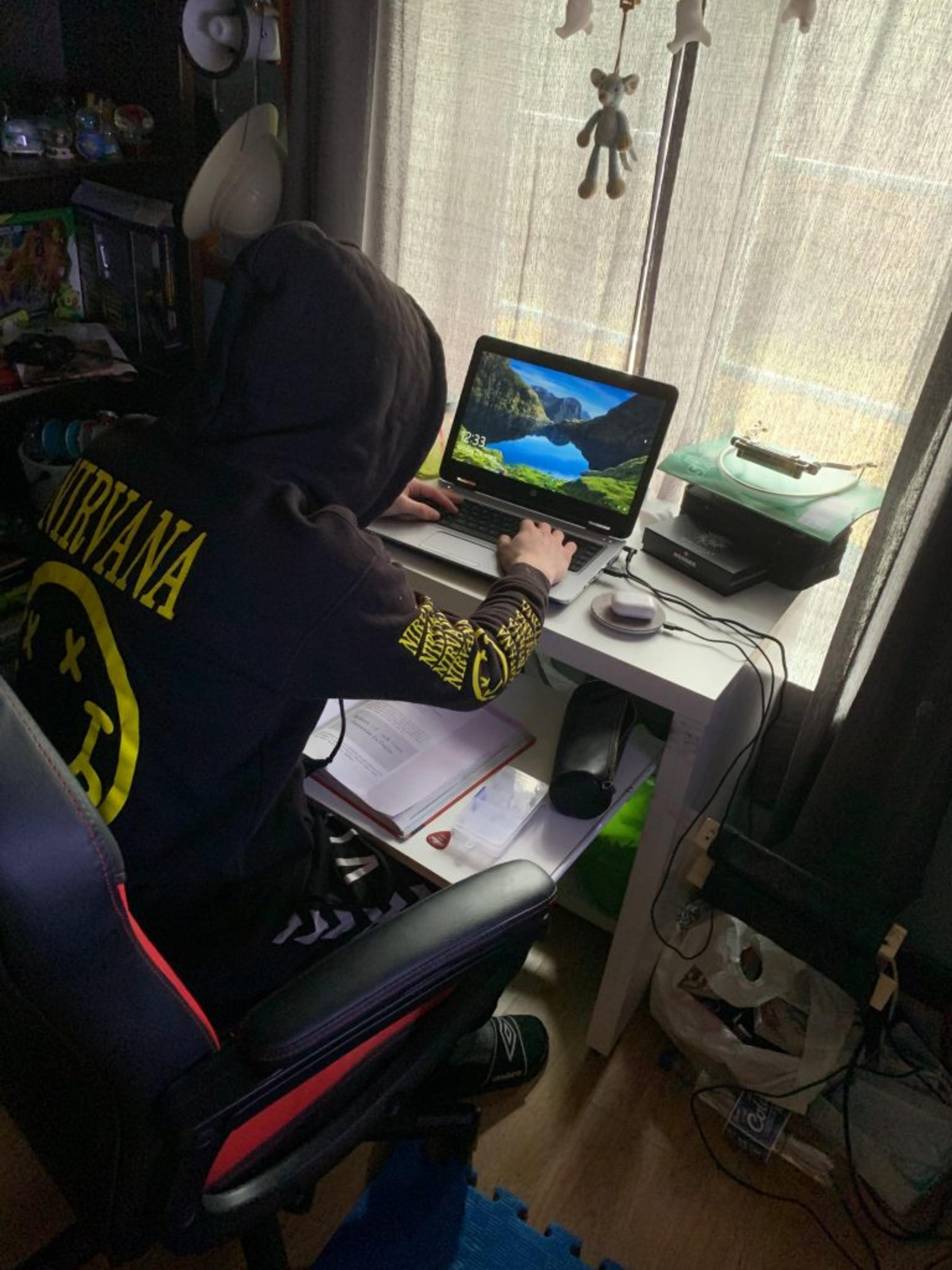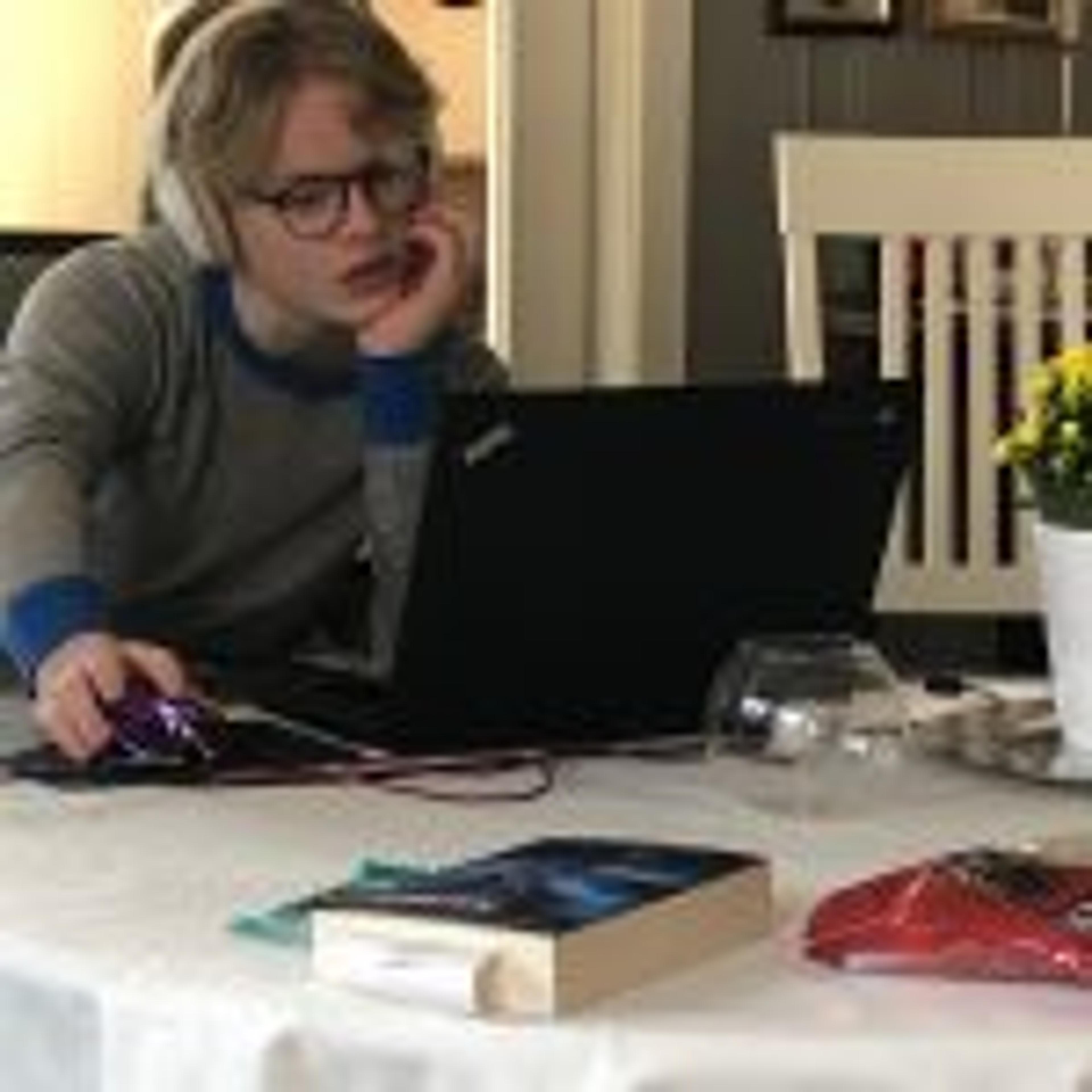 HJEMMEKONTOR: Både barn, ungdom og voksne har hjemmekontor om dagen, både for å lære og å jobbe. Sjøl om det er kjedelig, går det bra. Og noen positive sider klarer elevene også å finne i det hele. Foto: Privat.