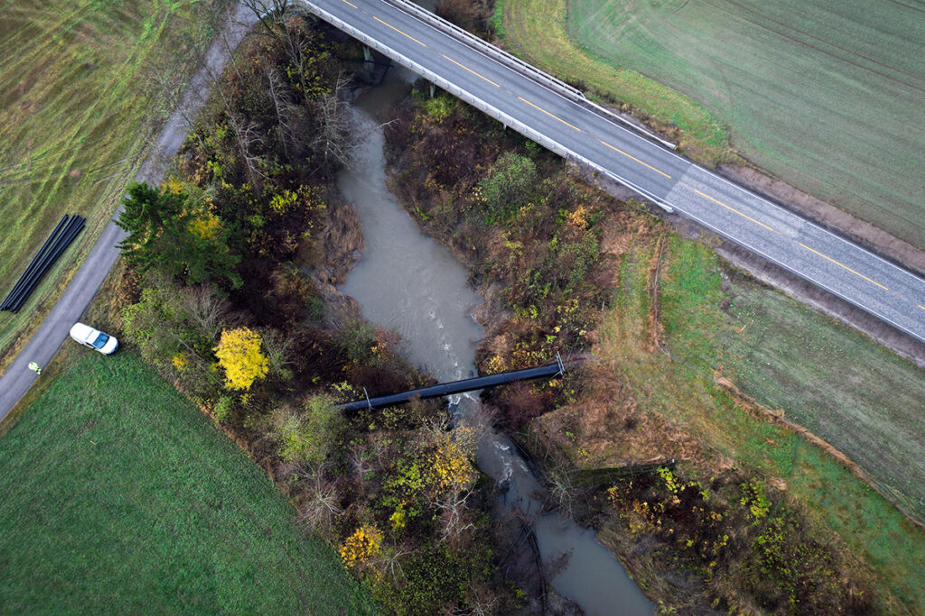 PROBLEMOMRÅDET: Erosjon fra bekken er et problem som krever større inngrep enn først forespeila. En høy prisstigning på toppen av det gjør at ramma for prosjektet må økes til det dobbelte. Foto: Pressemelding Vestfold og Telemark fylkeskommune.