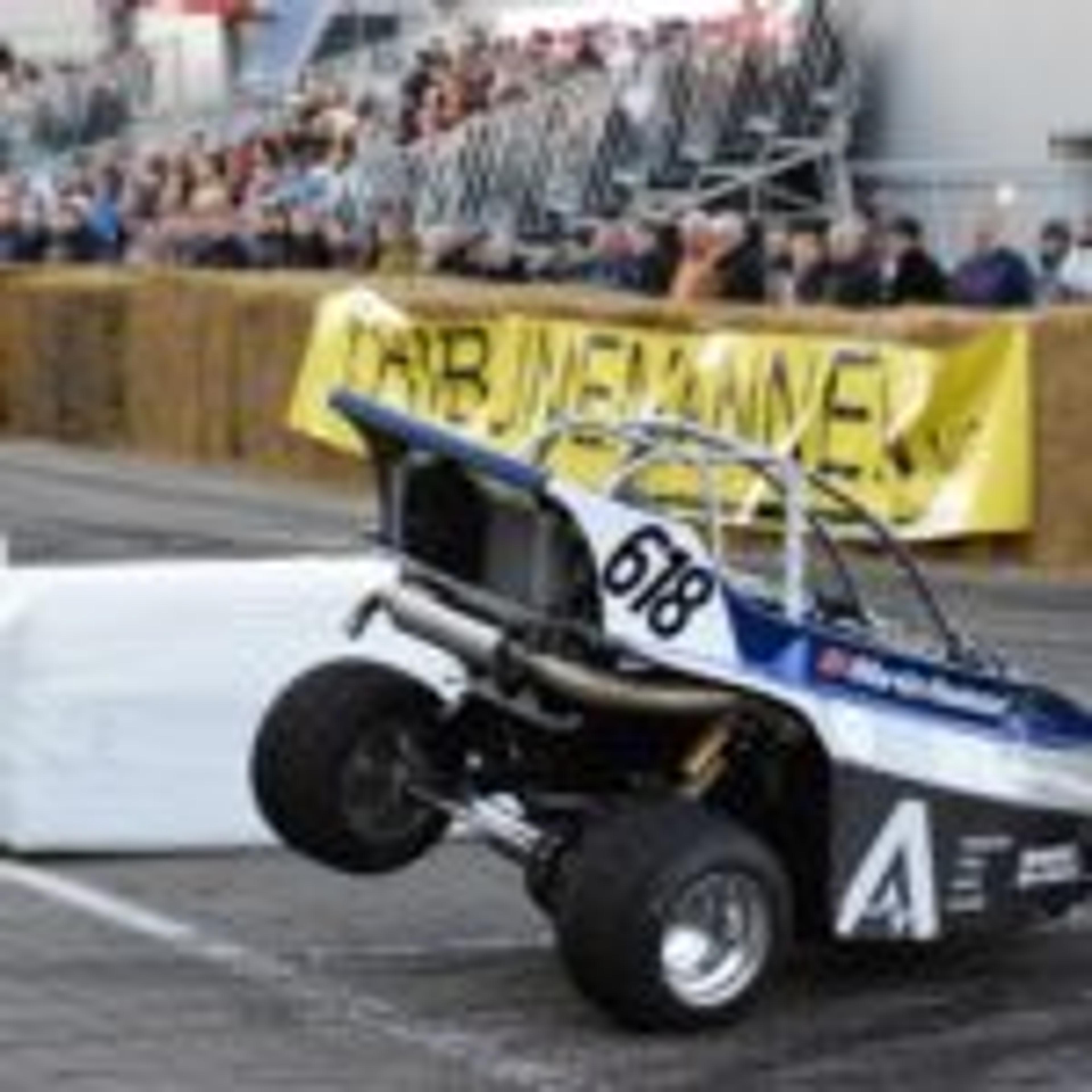 FULL FART: Crosskart er blitt en stor motorsportgrenen i et fartsfylt Re. Her kjører Martin Haslestad (27) oppvisning på Oslo motorshow sist høst. Foto: Stian Ormestad.