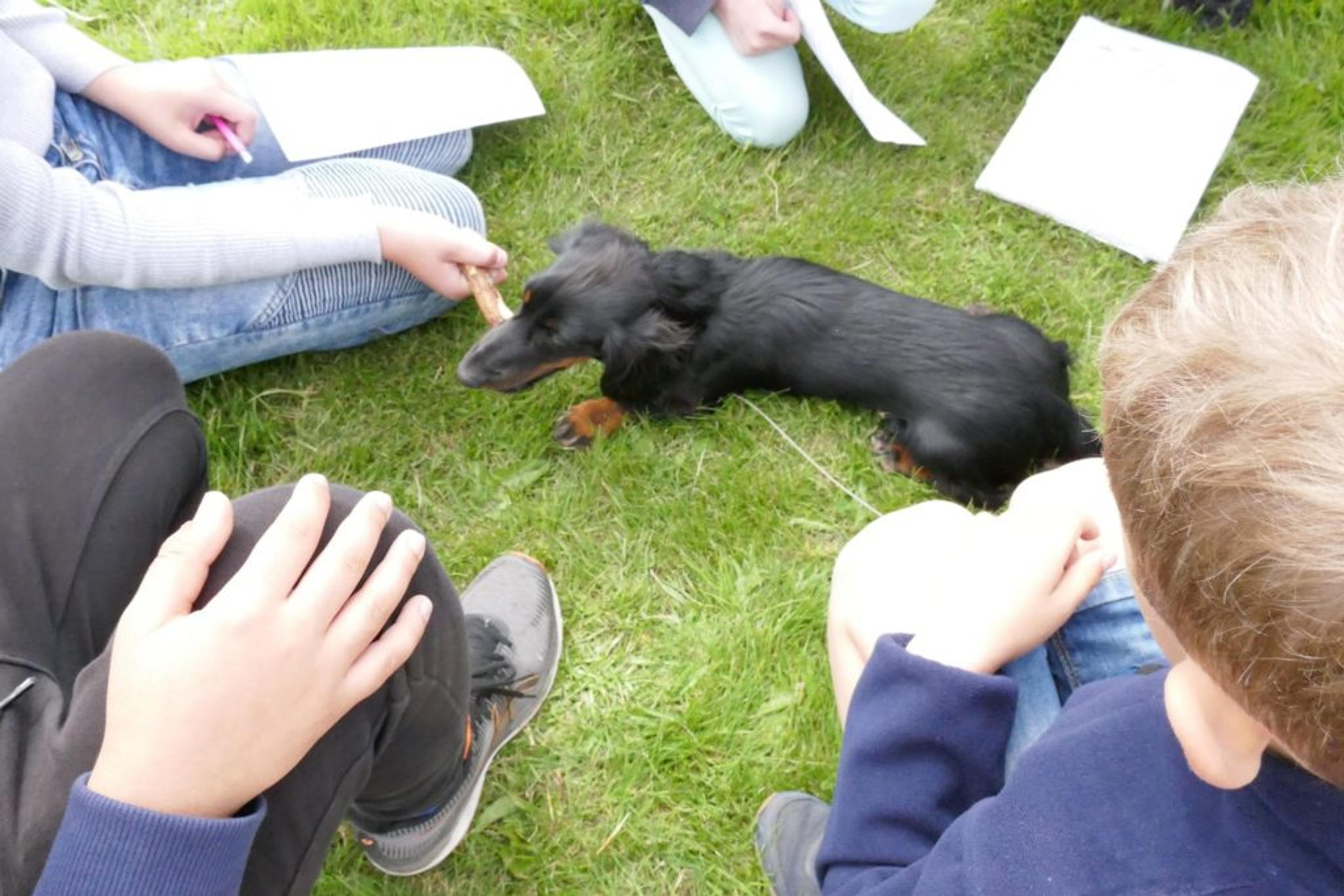 TITT-TEI! Denne krabaten var blant de mange hedergjestene under dyredagen. Foto: Ramnes skole.