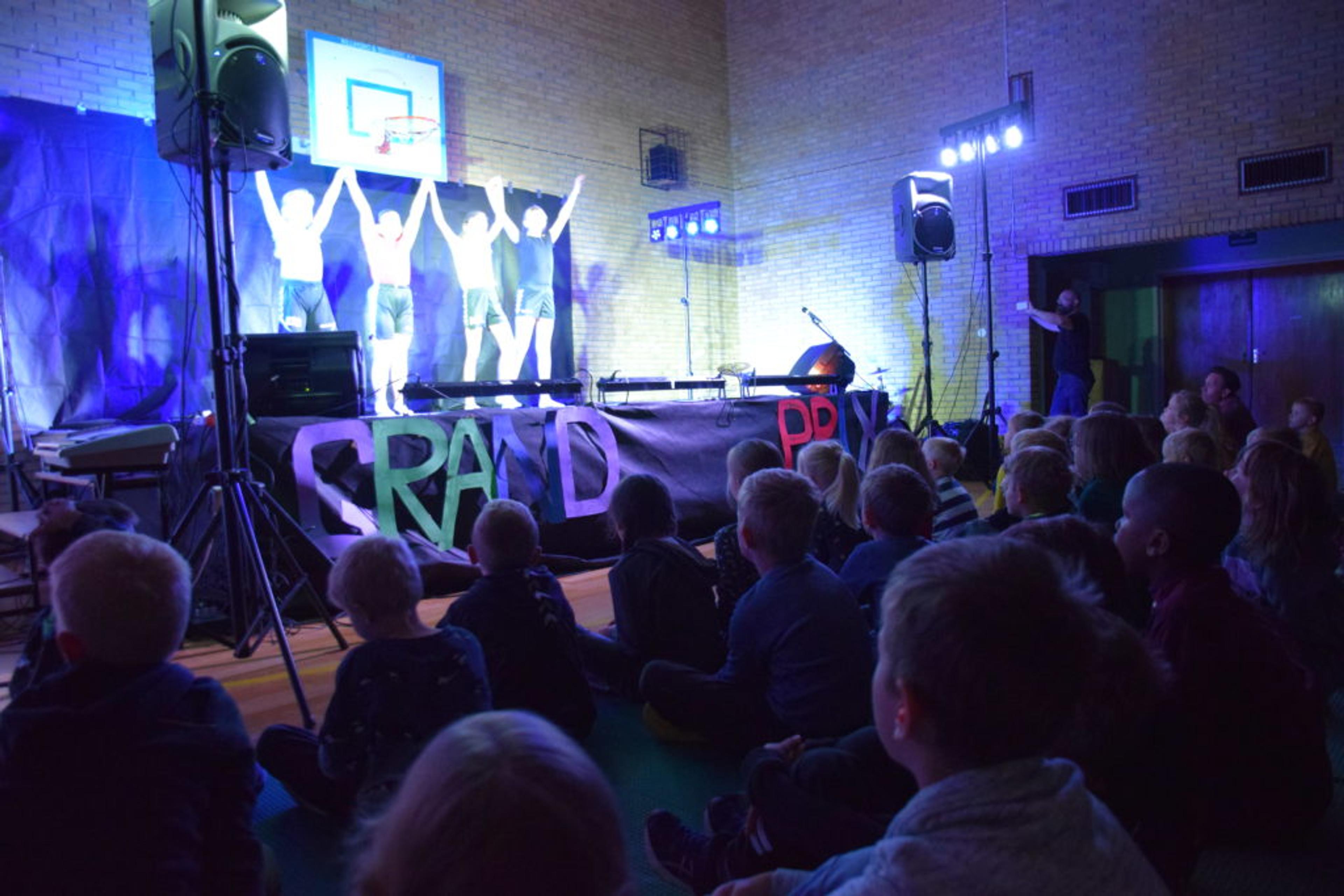 HER STARTA MGP-DRØMMEN: Ramnes skole arrangerer hvert år sitt eget MGP med kulturinnslag, heiagjenger i publikum med plakater og heiarop, røde løpere og alt som hører til. Foreldre og familie blir invitert som publikum, og lokalavisa kommer for å dekke det hele. Skolen har til og med sitt eget lærerband som kan backe elevene på scenen. Arkivfoto: Stian Ormestad.
