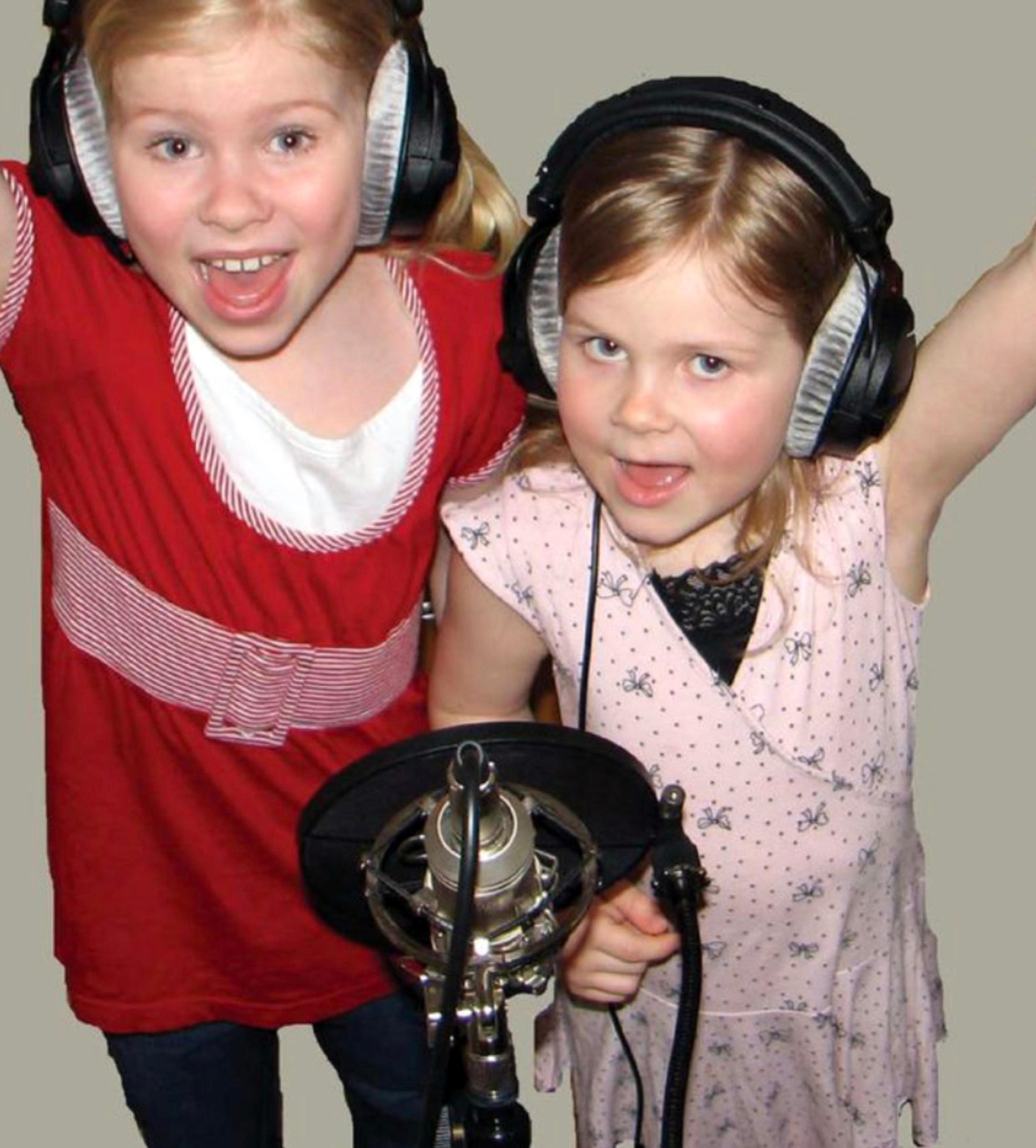 MUSIKK-SØSTRE: Eline og lillesøster Julie foran mikrofonen som 9- og 6-åringer. Faksimile: Re menighetsblad, mai 2008.