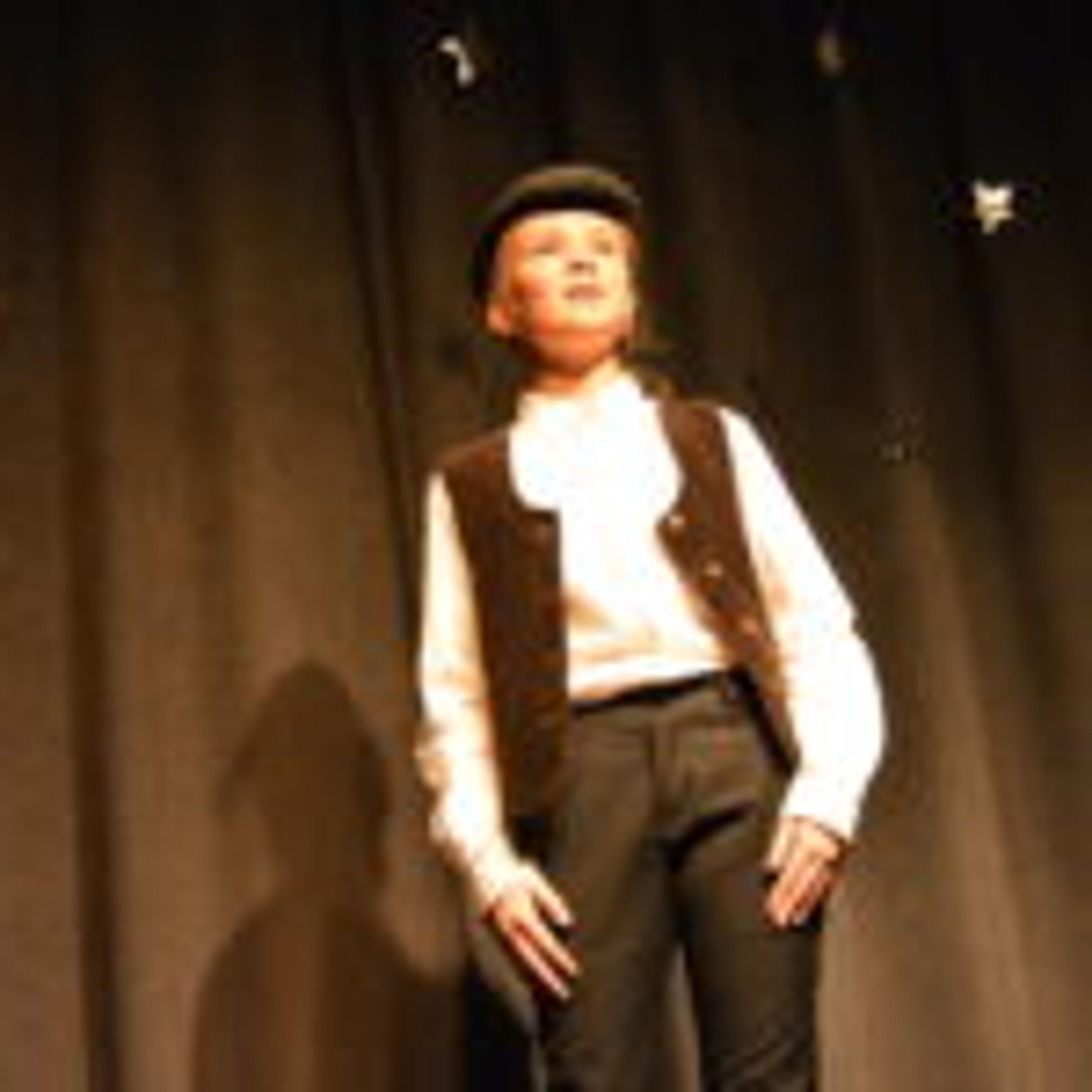 FORTID OG NÅTID: Elea Kirkeberg Gjellan (10) spilte fortidens-Scrooge. Foto: Amalie Andersen.