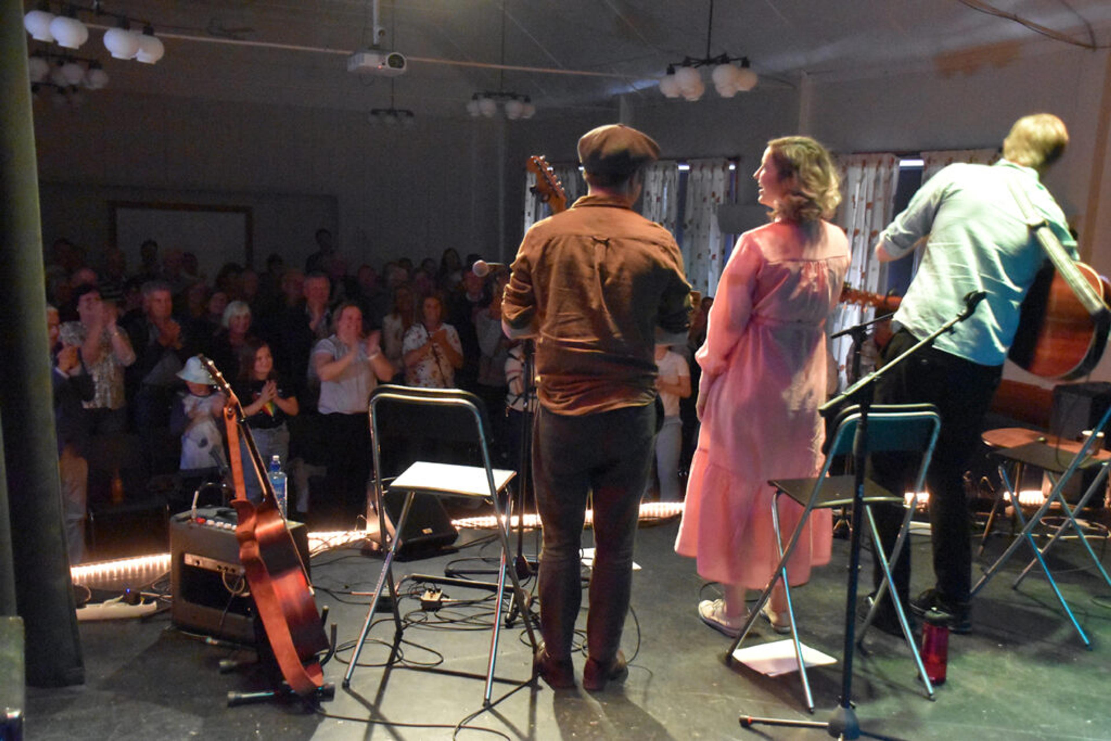 STÅENDE APPLAUS: Endelig konsert på Kulturhuset Elverhøy igjen – den første etter korona. Og for et comeback for kulturhuset! Foto: Stian Ormestad.