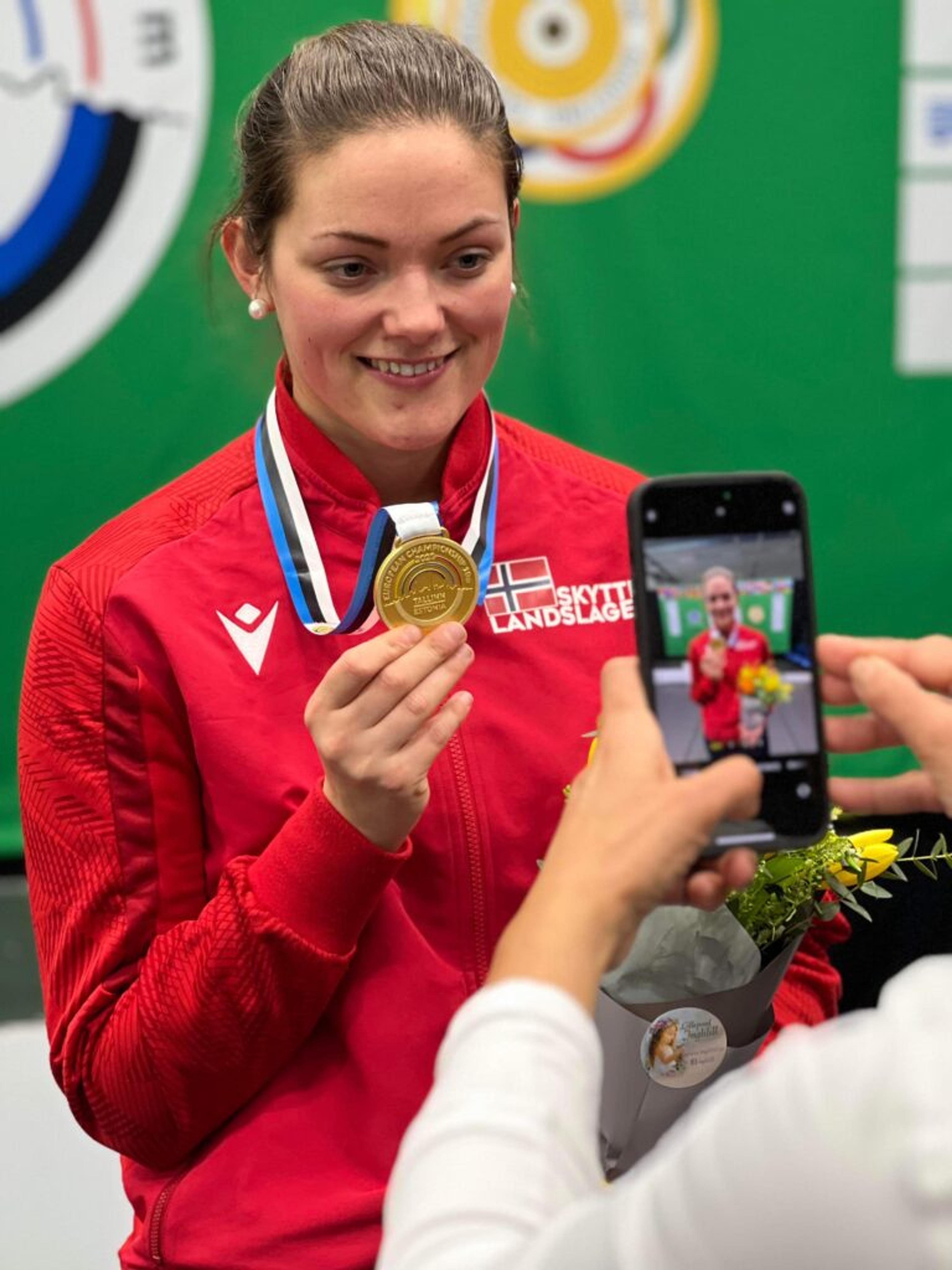 Dette er Norges første EM-gull på 10 meter luftrifle for kvinner på 42 år. Og i tillegg sikra hun Norge den tredje kvoteplassen til OL i Paris i 2024, ifølge sportssjef i skytterforbundet Tor Idar Aune.
