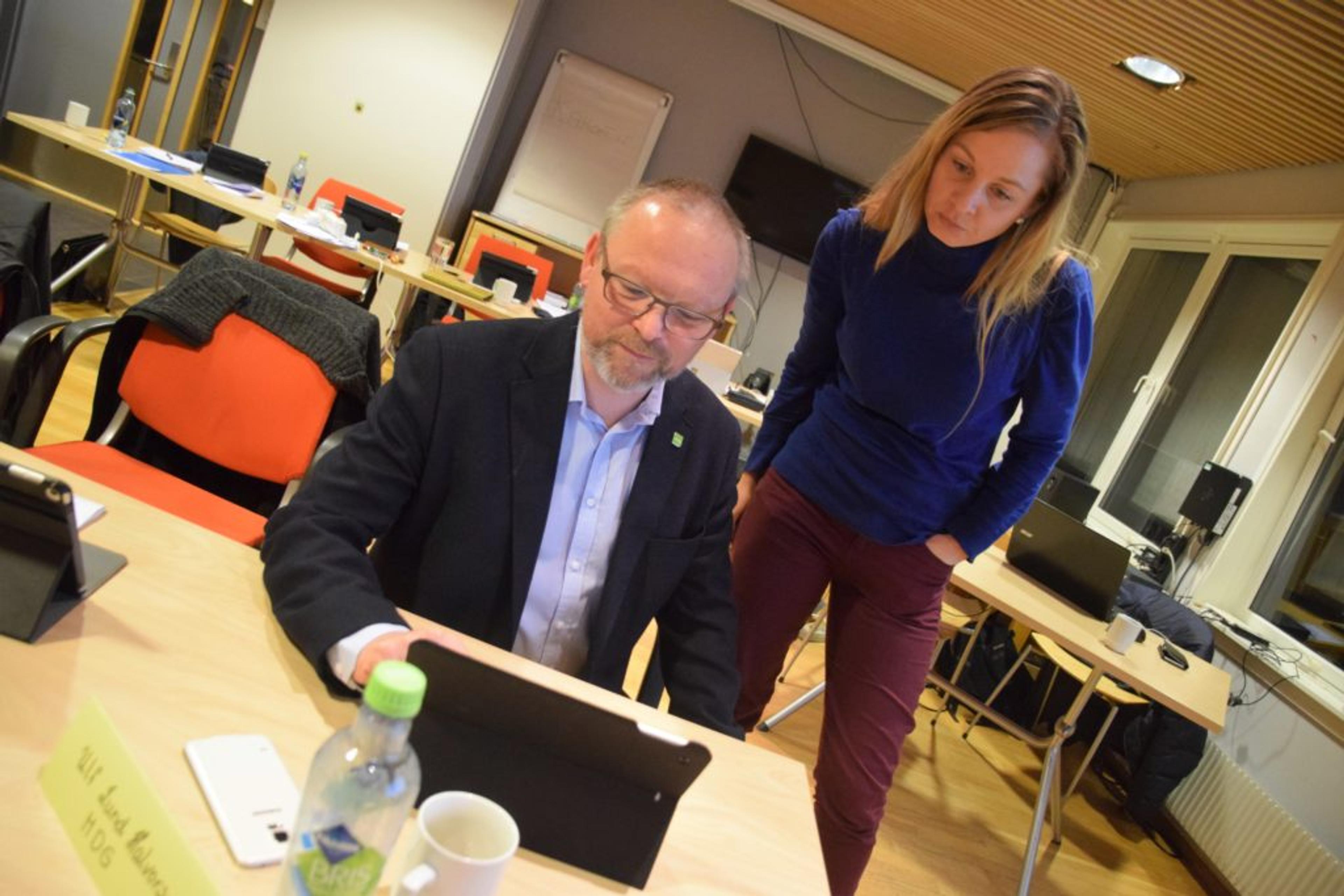 MDG I RE: Ulf Lund Halvorsen, 3. kandidat for Tønsberg MDG og tidligere kommunestyrerepresentant i Re, og Kari Proos, dagens kommunestyrerepresentant for MDG i Re, som gir seg i lokalpolitikken etter denne perioden. Foto: Stian Ormestad.