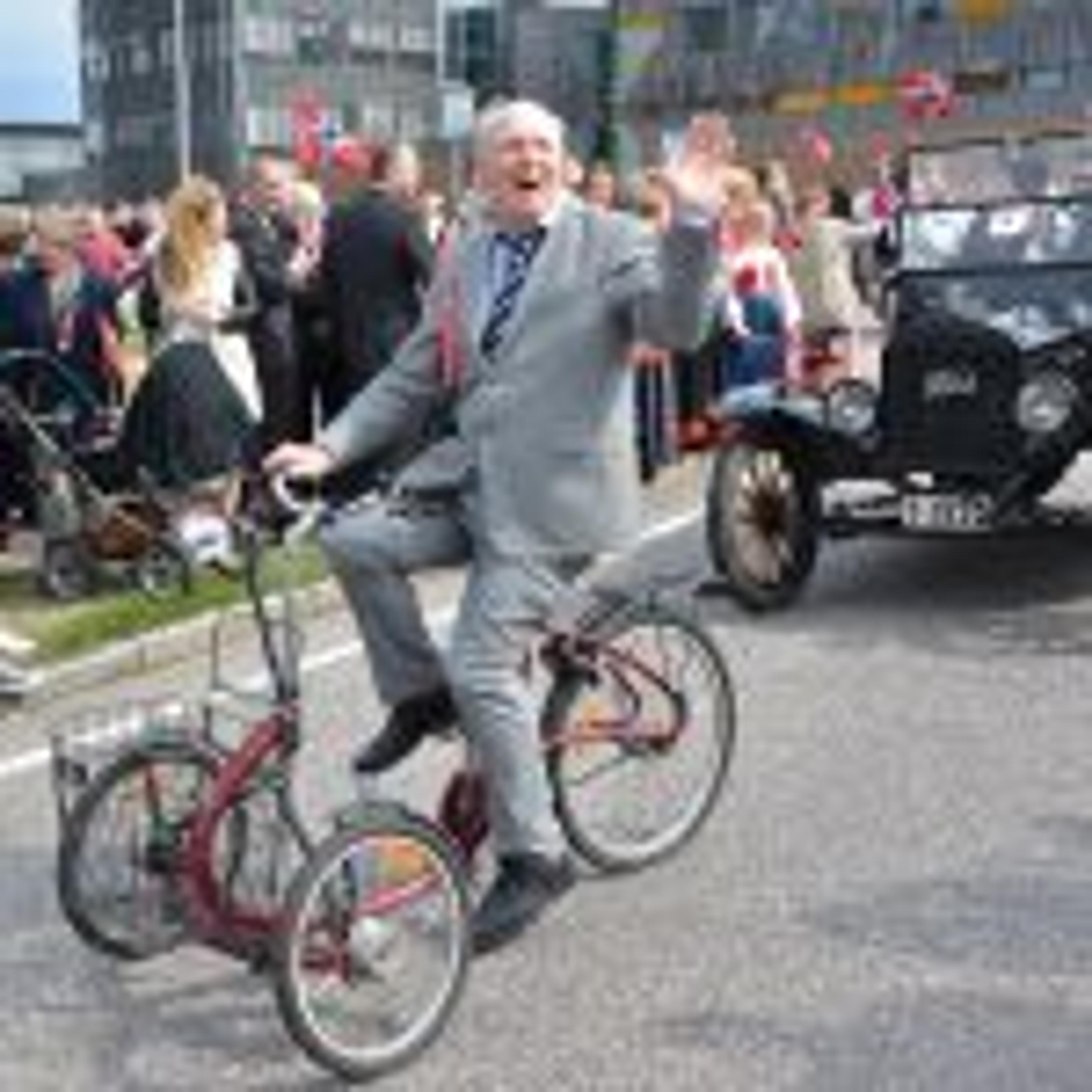 I FARTA: Ole Kristian Egge på sykkelen sin, her i 17. mai-toget på Revetal for noen år siden. Foto: Stian Ormestad.