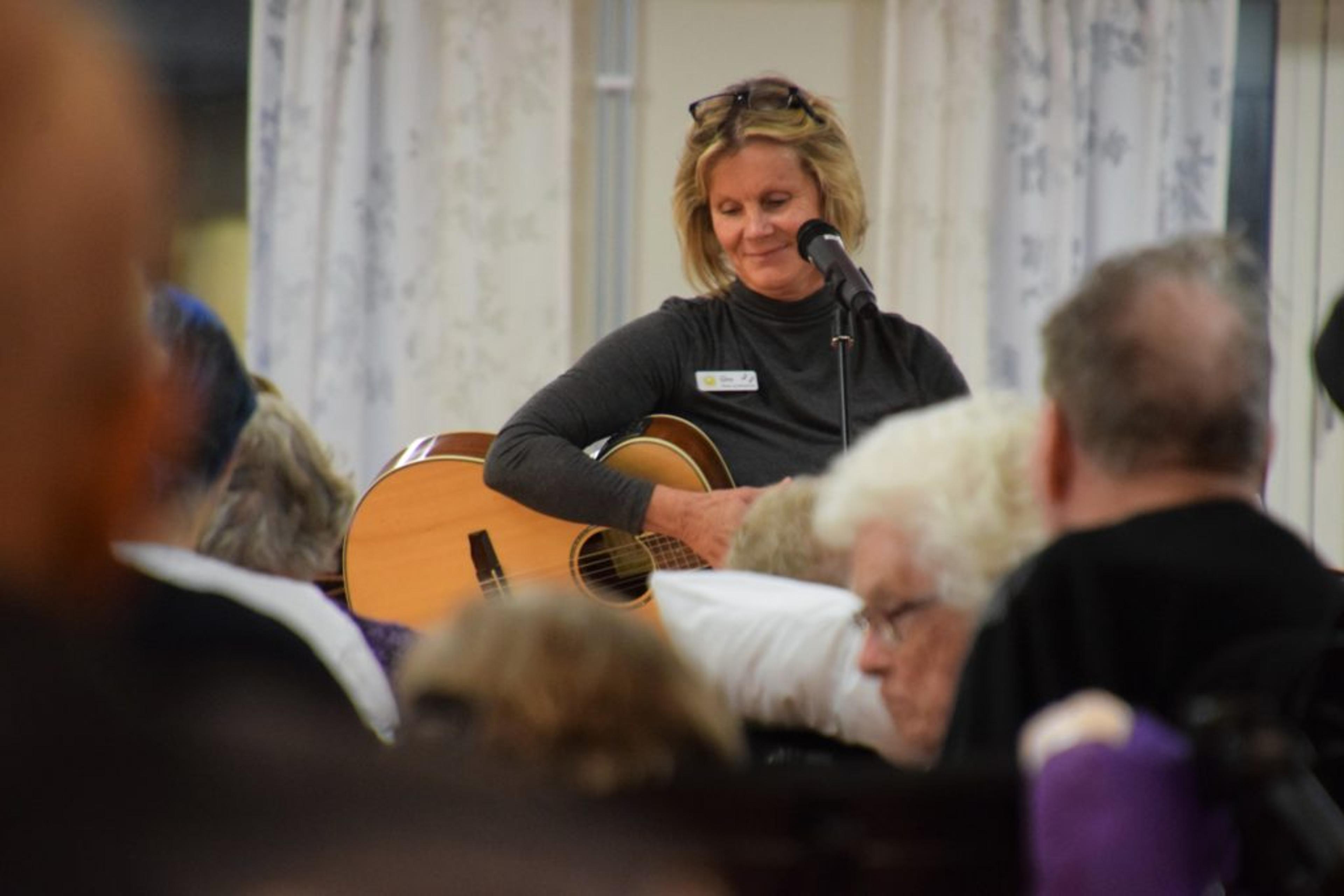 GLEDER SEG OVER MER NORMALE TIDER: Gro Hansen, kulturkoordinator ved Re helsehus, har gjort det beste ut av det i korona-tid. Men endelig kan helsehuset fylles med kultur og sangglede som før. Arkivfoto: Stian Ormestad.