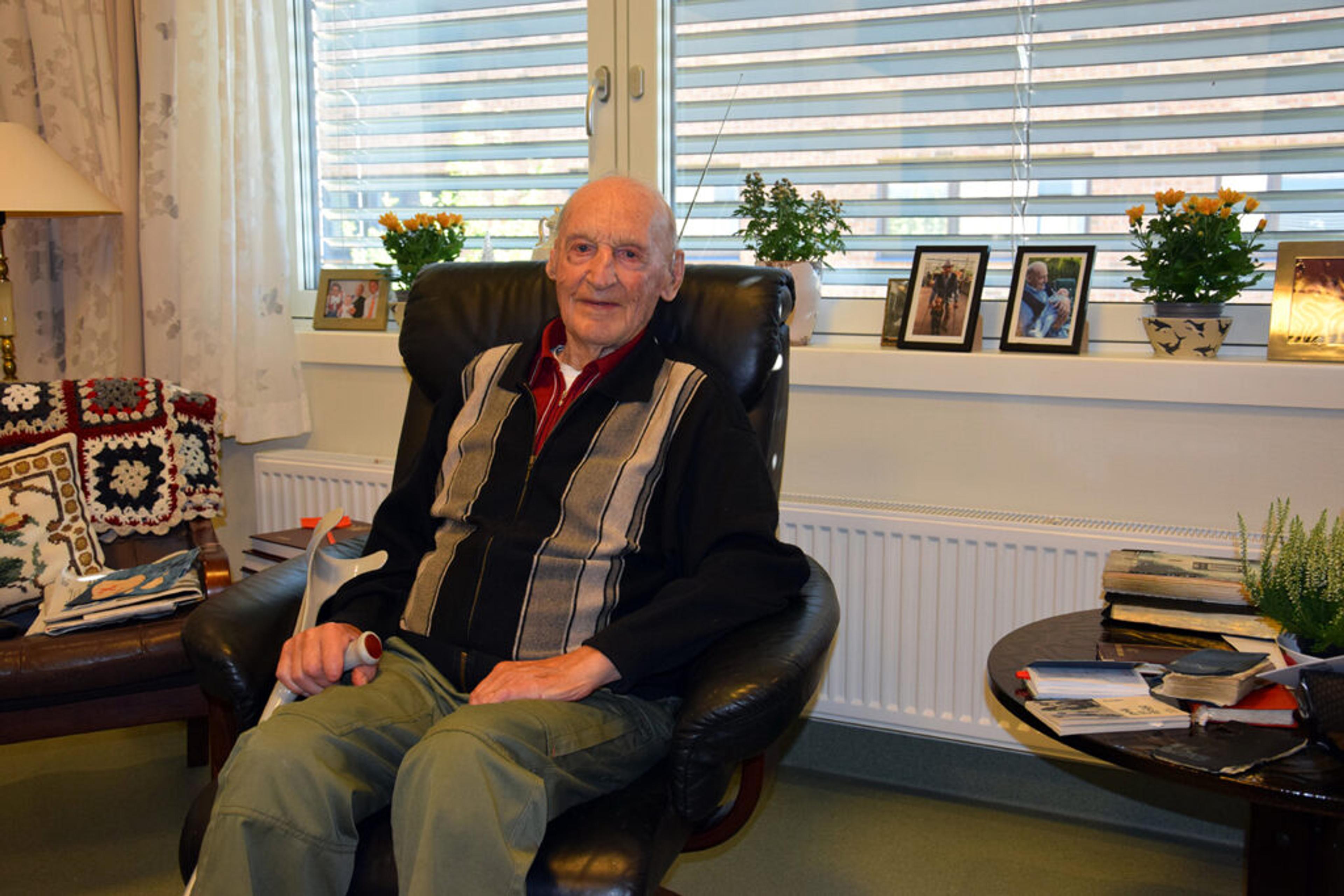 100-ÅRSFEIRING: Erling Klausen lada opp til 100-årsfeiring med lokalavisa på besøk. Han hadde stadig noe på hjertet, det ble mange trivelige telefonsamtaler til lokalavisa fra en samfunnsengasjert kar helt til det siste. Arkivfoto: Håkon Westby, ReAvisa.