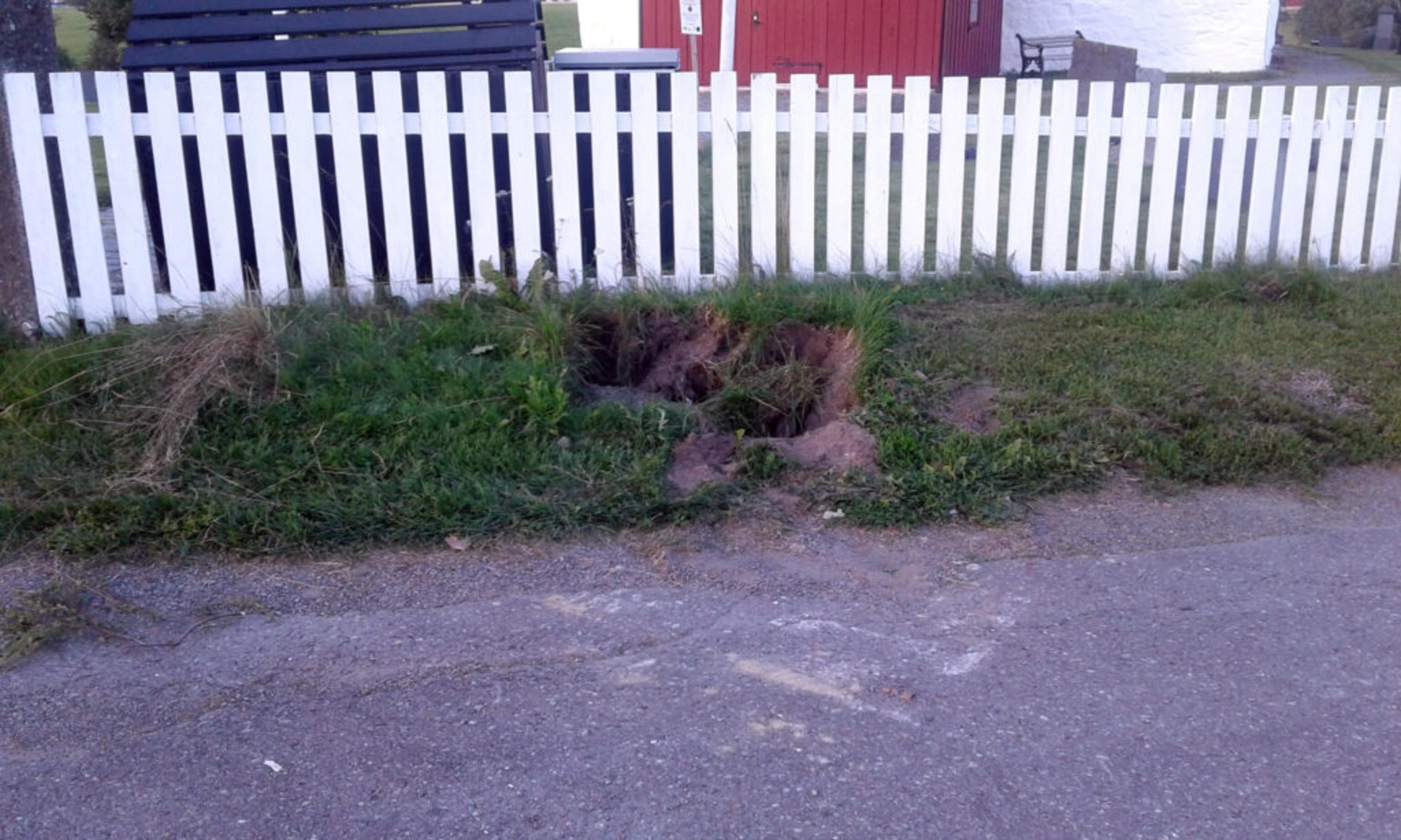 Lokalavisa fikk oversendt bilder av den tomme gropa ved kirkegårdsgjerdet.