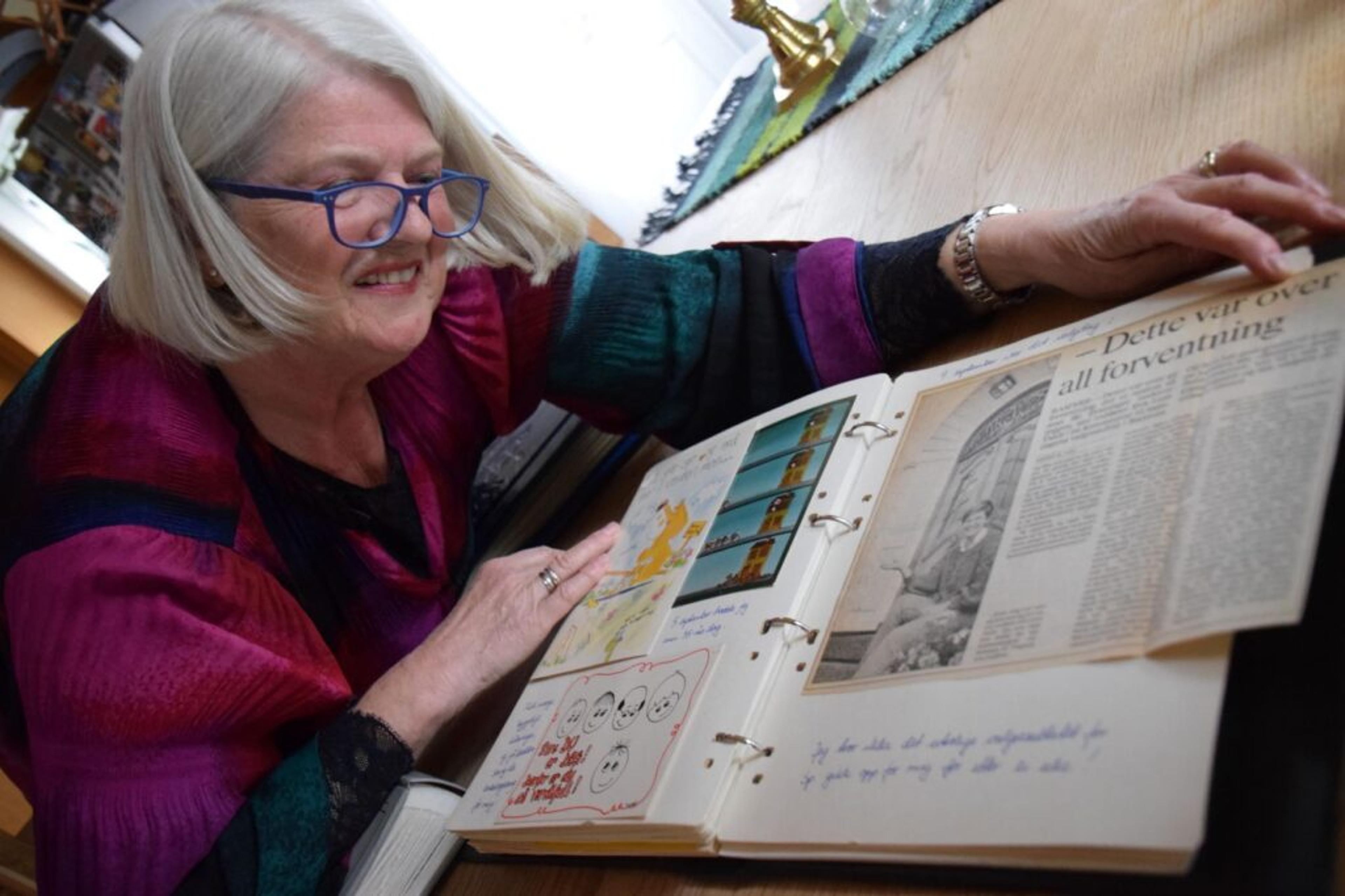 LOKALHISTORIE: Valgresultatet etter fire år i ordførerstolen var en knallgod tilbakemelding til den unge, kvinnelige ordføreren. Eva har en stor samling med lokalhistorie i sine permer. Foto: Stian Ormestad, utklippsbok.
