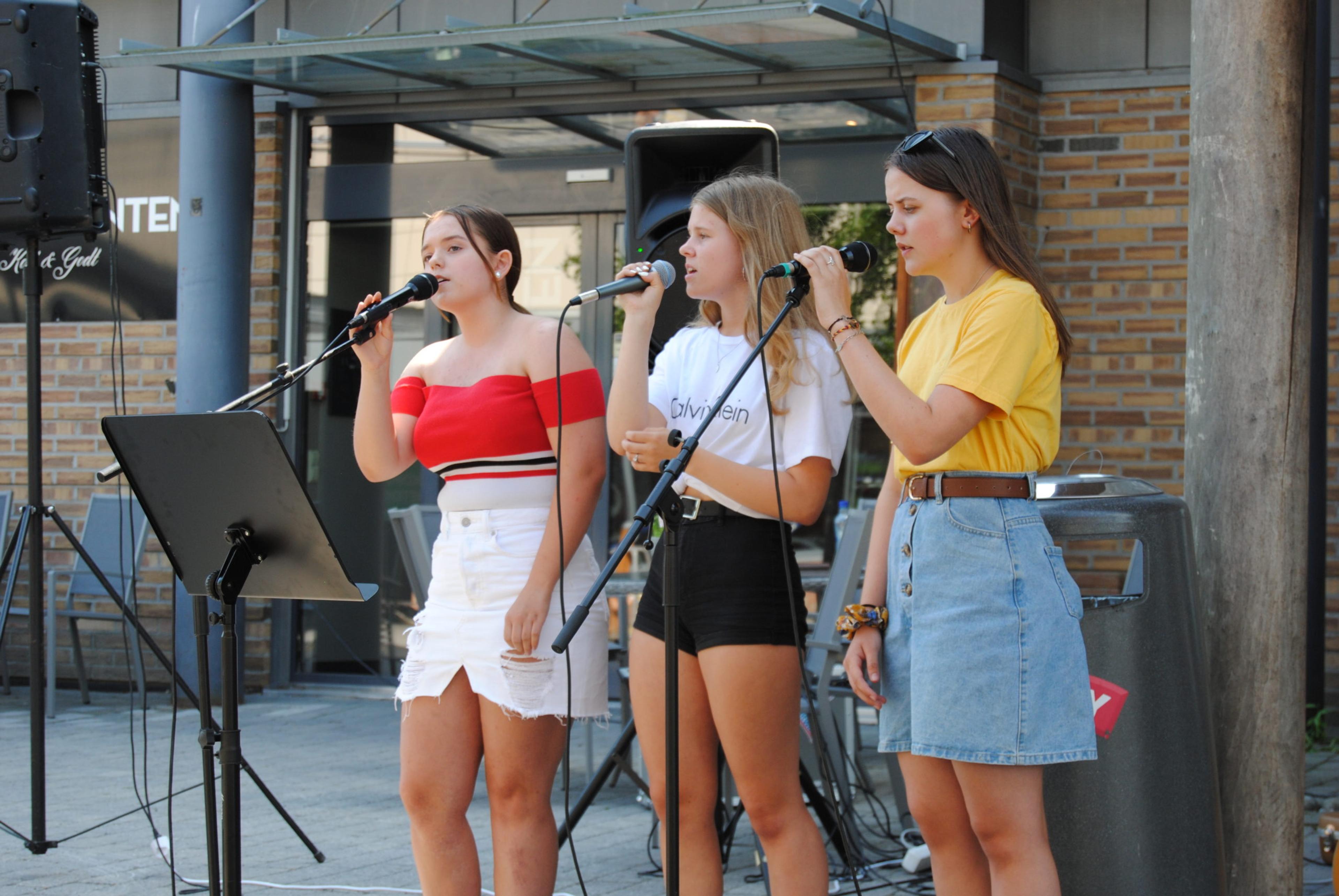 Trioen Nora Dalseth, Christina Hoff Bøe og Kaja Glåmen synger sammen. Foto: Lykke Amelie Amundsen.