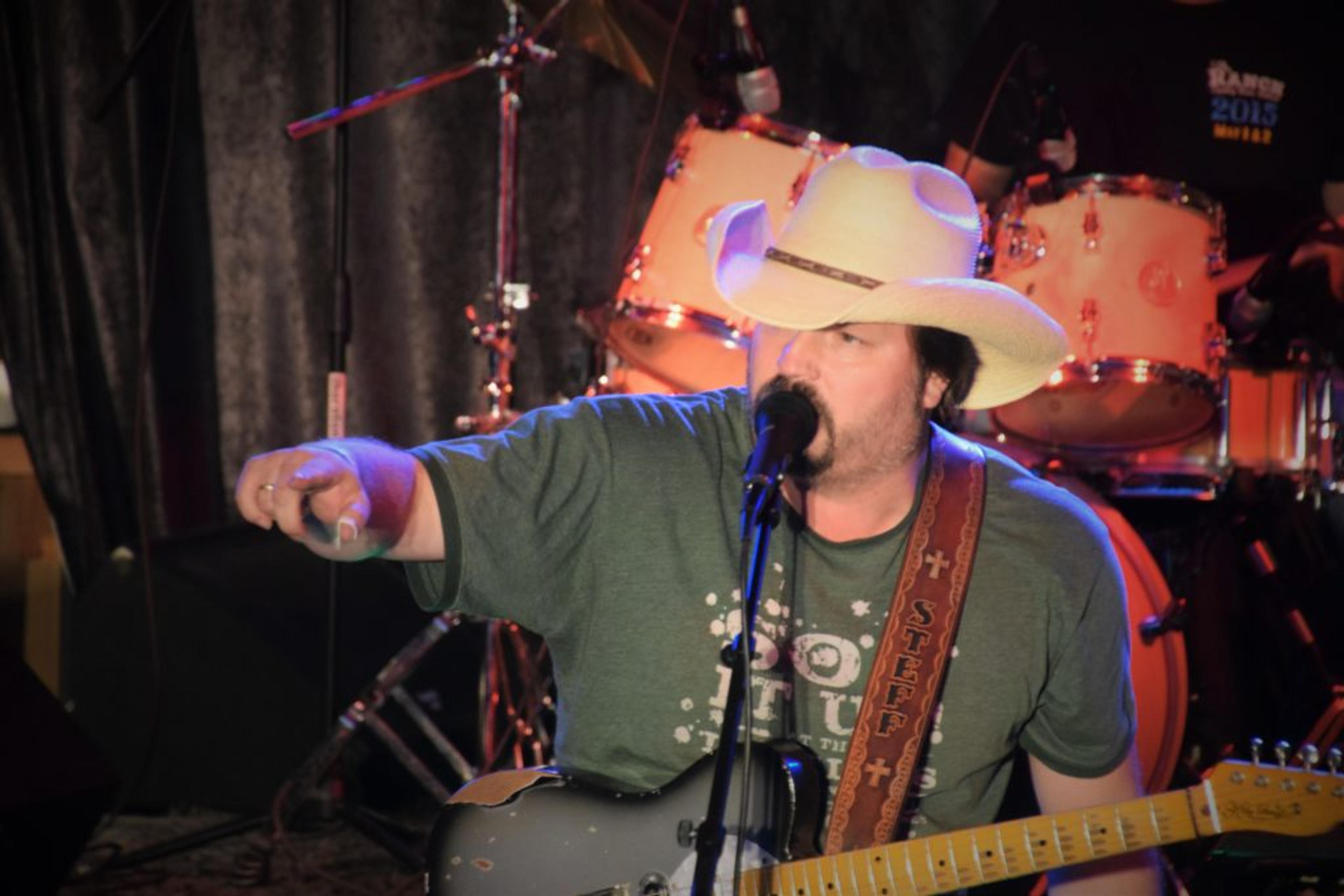 BEKKEFARE MUSIKKFESTIVAL: Steff Nevers spiller her på Bekkefare musikkfestival i fjor. Det var så vellykka at både publikum, vertskap og countryrockeren sjøl vil komme tilbake i sommer. Foto: Stian Ormestad.