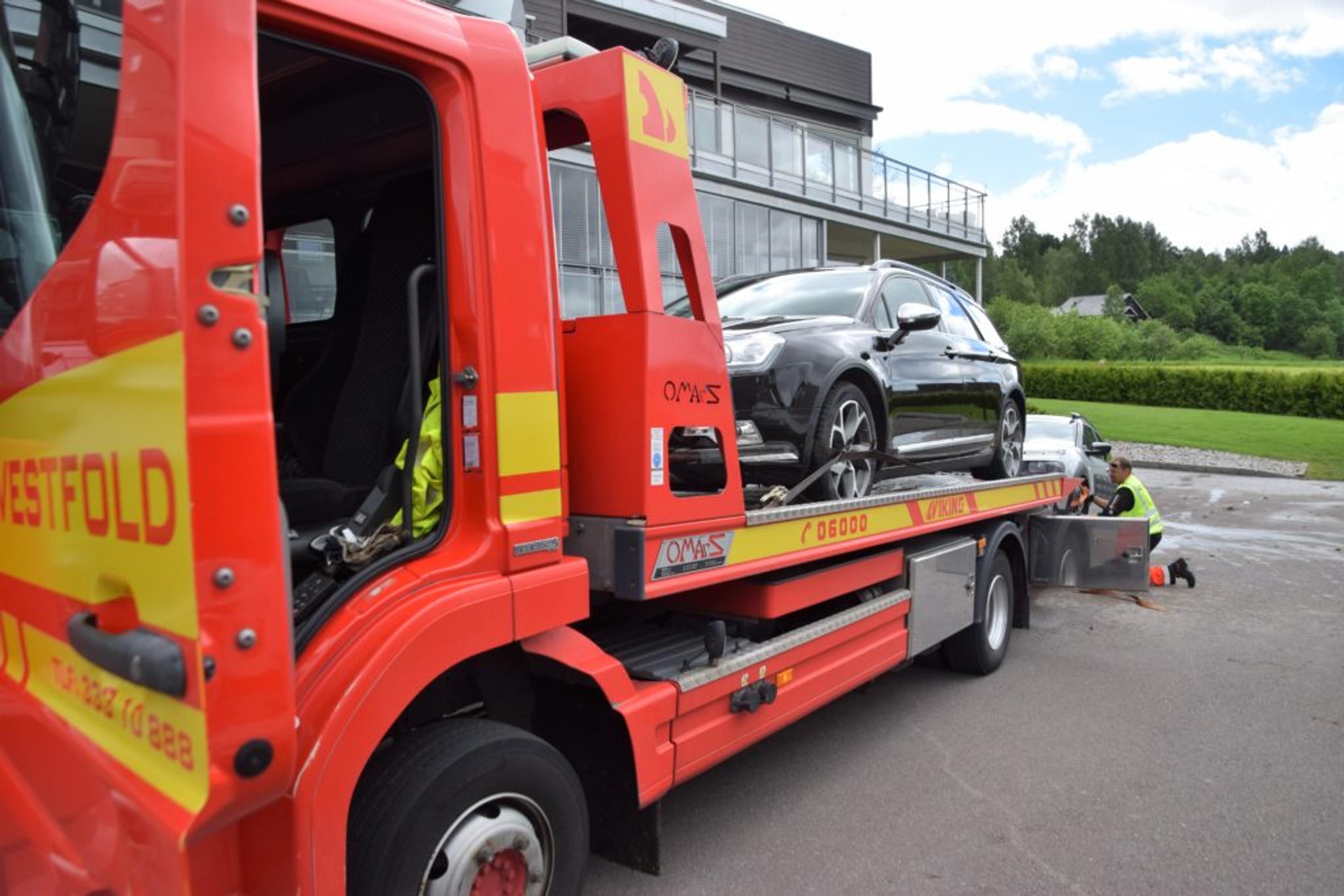 RYDDER OPP: Bilbergerne kjører i skytteltrafikk til og fra Revetal med vannskadede biler. Foto: Stian Ormestad.
