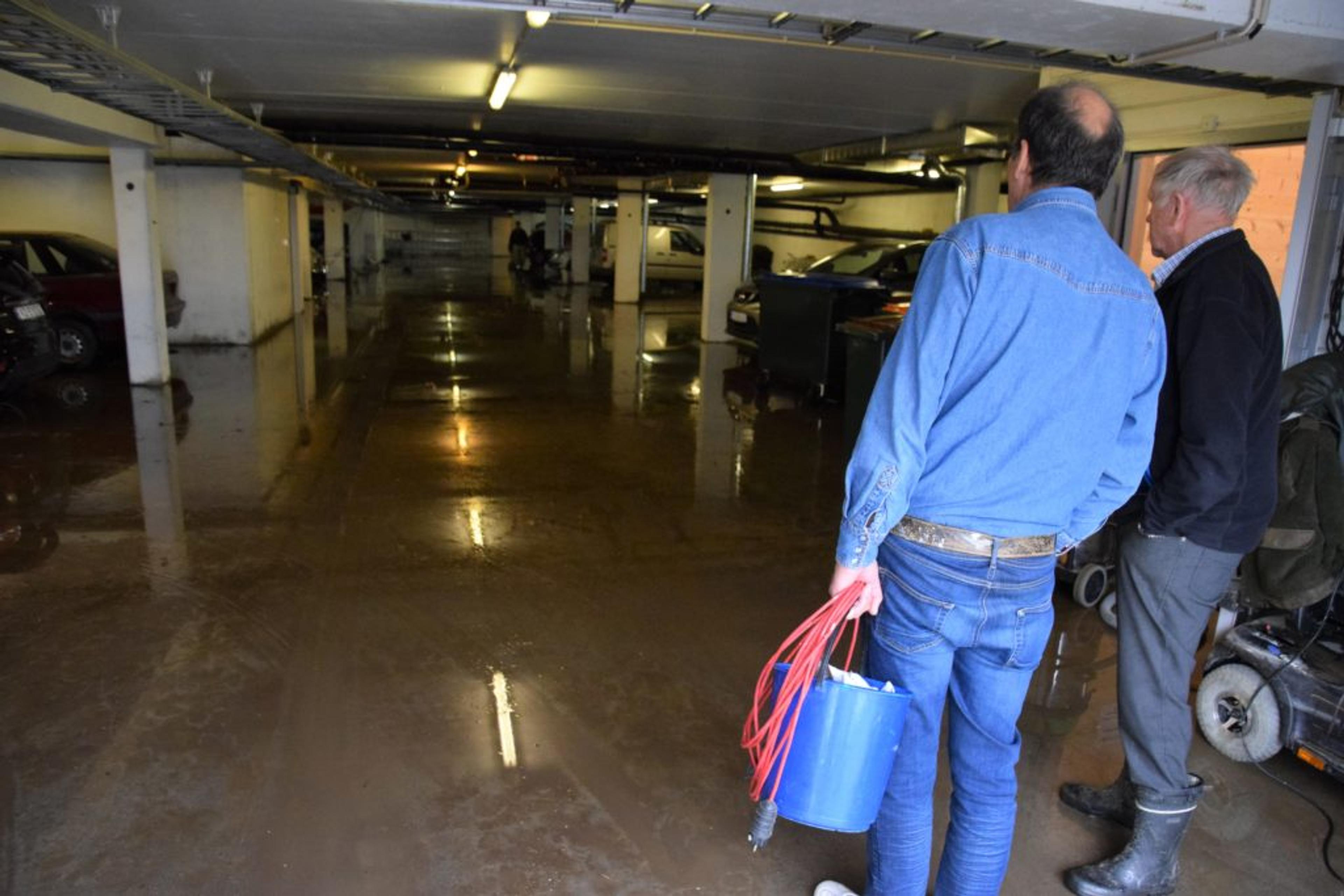 RYDDER OPP: Nabolaget er fortvila over å stå i samme situasjon som for bare snaue to år siden: Parkeringskjelleren, bodene og heissjakta er fylt med vann nok en gang. Foto: Stian Ormestad.