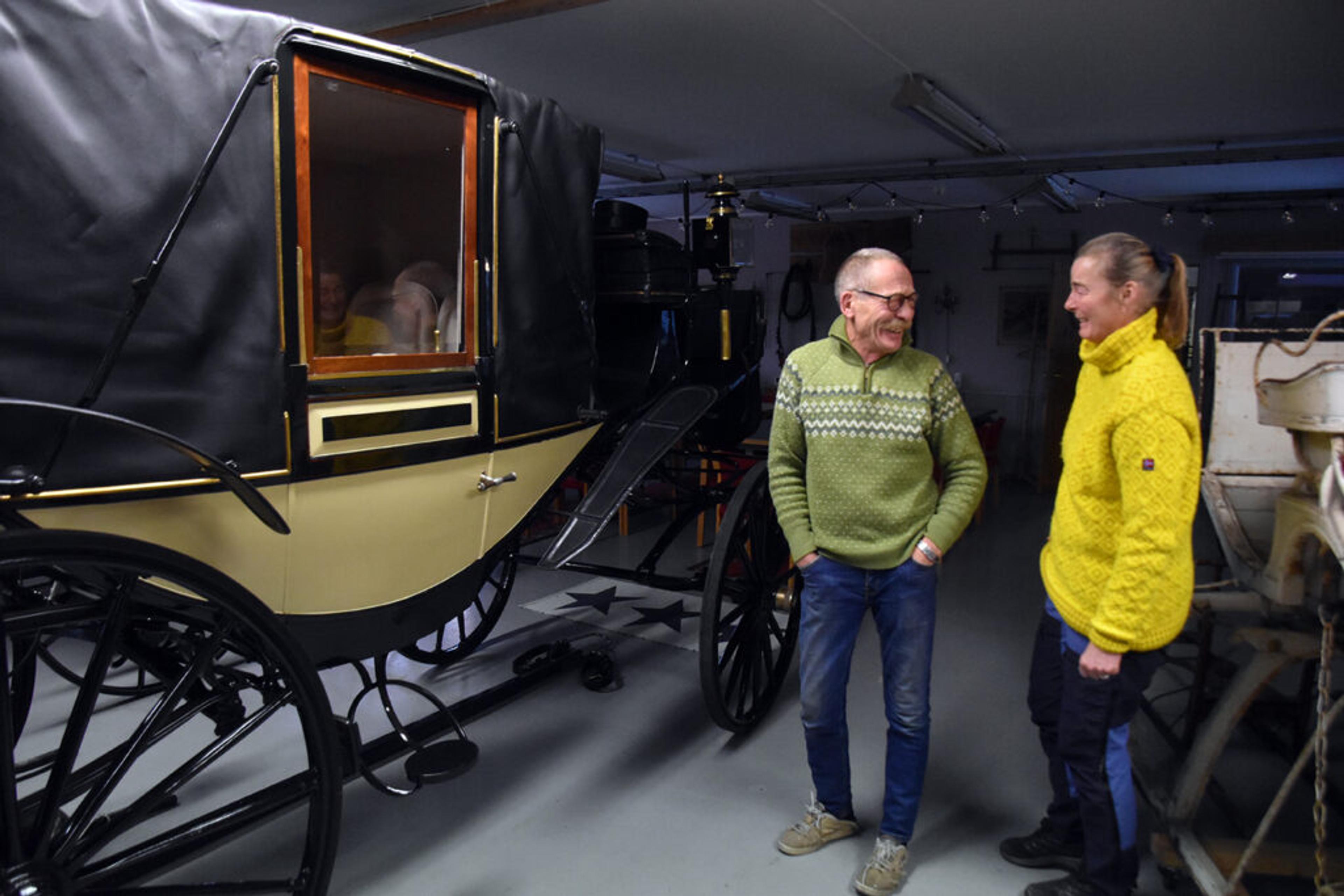 KLENODIER: Vognene som selges unna er klenodier, ofte bare en av svært få som er igjen i hele verden. Denne vogna har Dronning Sonja kjørt med, det har ikke mangla på staselige oppdrag. Roger har samla på heste-historie hele livet sitt, som nå selges unna. Foto: Stian Ormestad, ReAvisa.