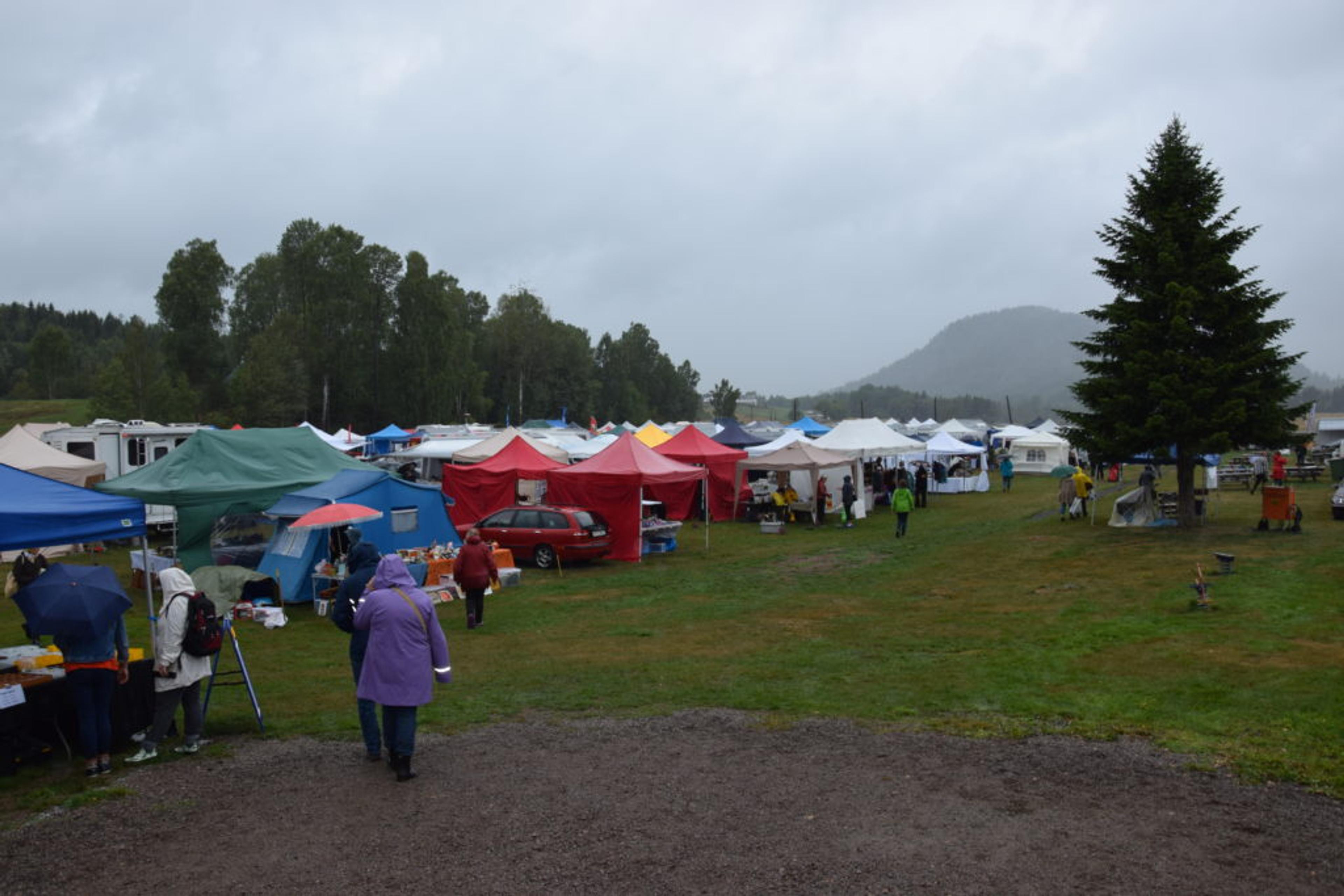 I boksalget i det gamle biblioteket på Sagatun solgte Kari Stokke og Grete Vallumrød bøker og blader. De kunne fortelle om bra salg fra morgenen av, og at det ble enda bedre da det begynte å regne – for da trakk folk inn. Aldri så gæli at det ikke er godt for noe!