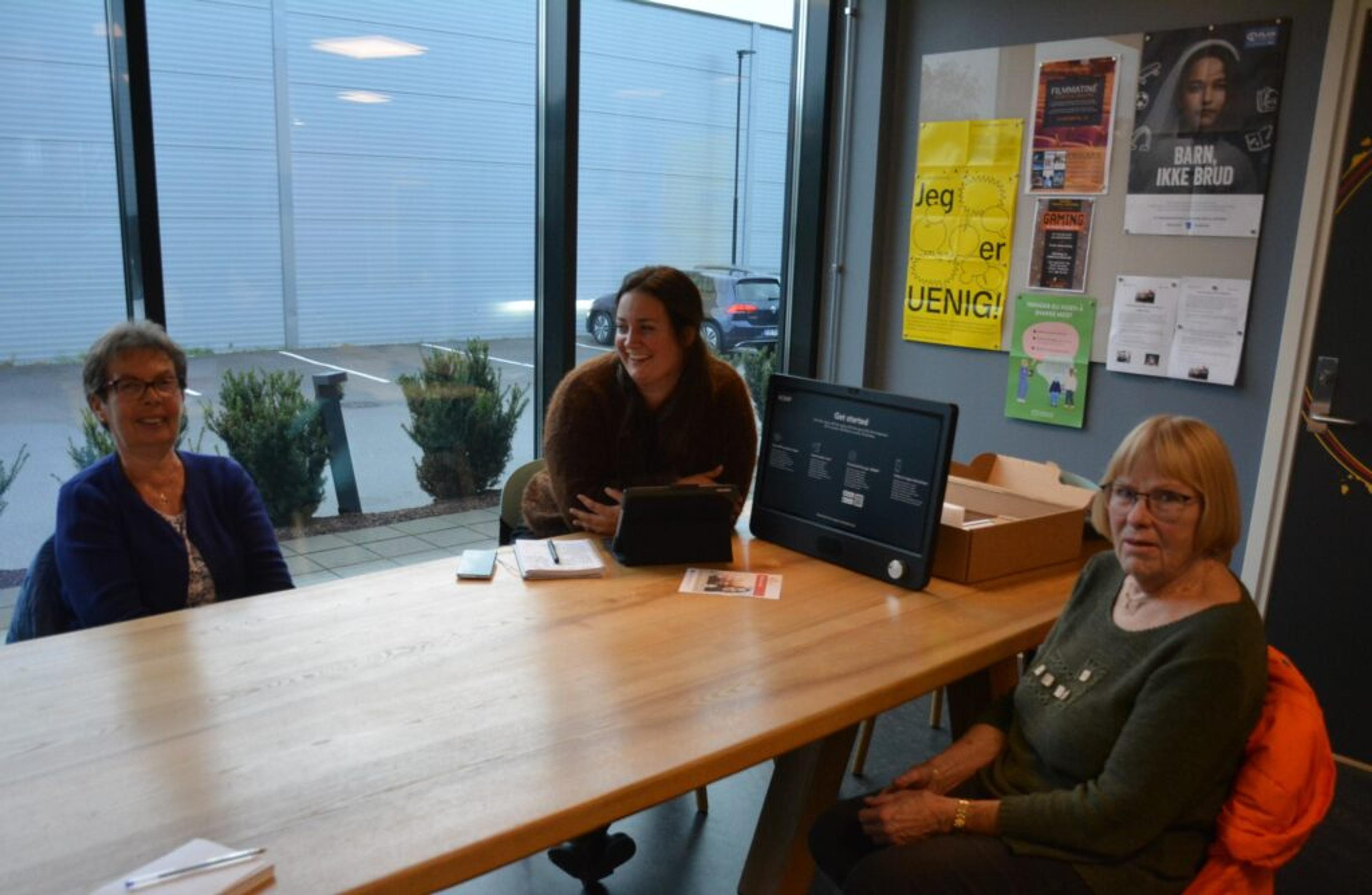 VIL FOREBYGGE ENSOMHET: Torild Sanni (69), Renathe Fekene (33) og Anne Karin Vike (78) tar i mot søknader fram til og med førstkommende fredag 22. oktober 2021. Foto: Lovis Eggum Wallberg.