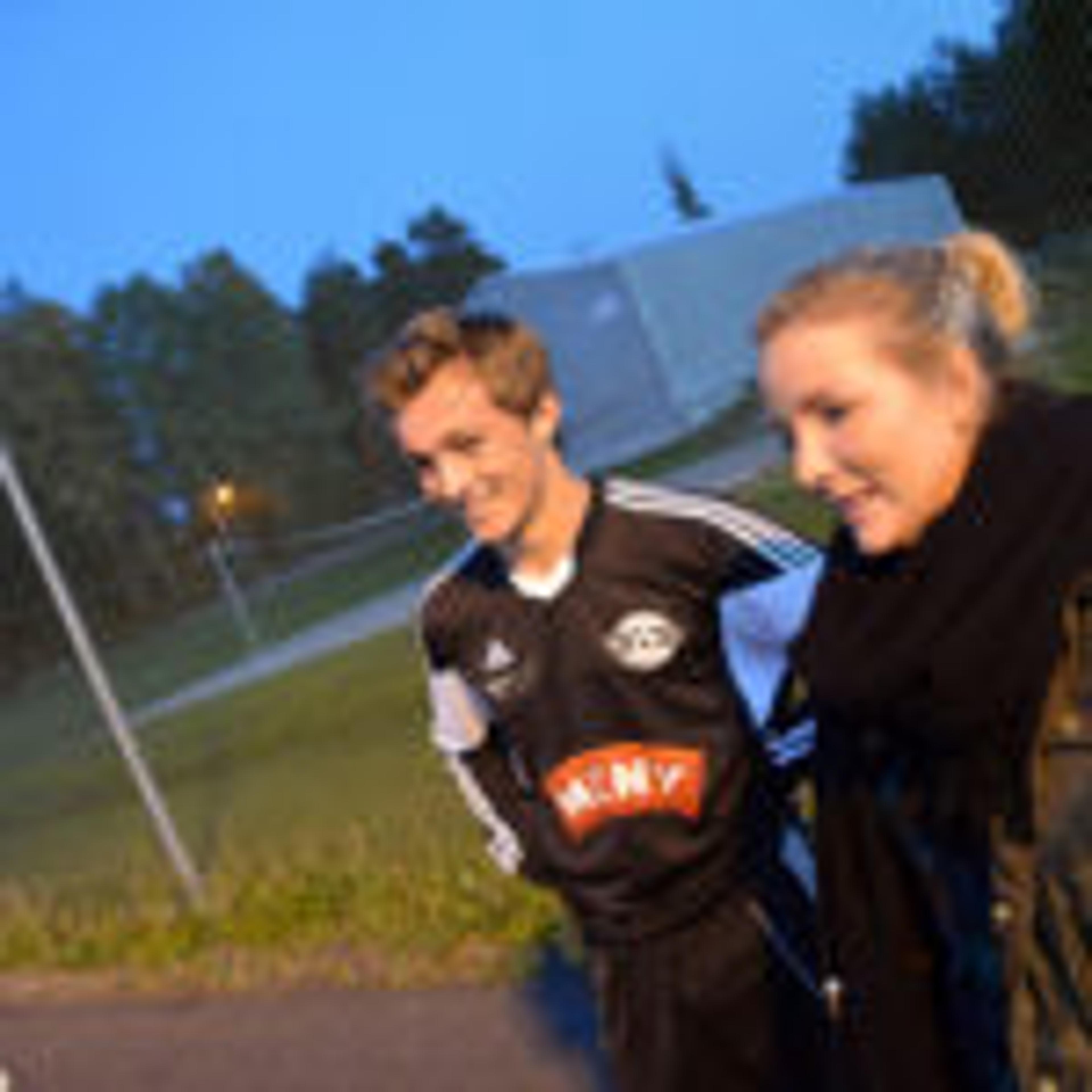 TIDENES FØRSTE: Fotballtalentet Tobias Gran ble det aller første idrettsnavnet i Re. Her i prat med ReAvisas Synne Eggum Myrvang. Foto: Stian Ormestad.
