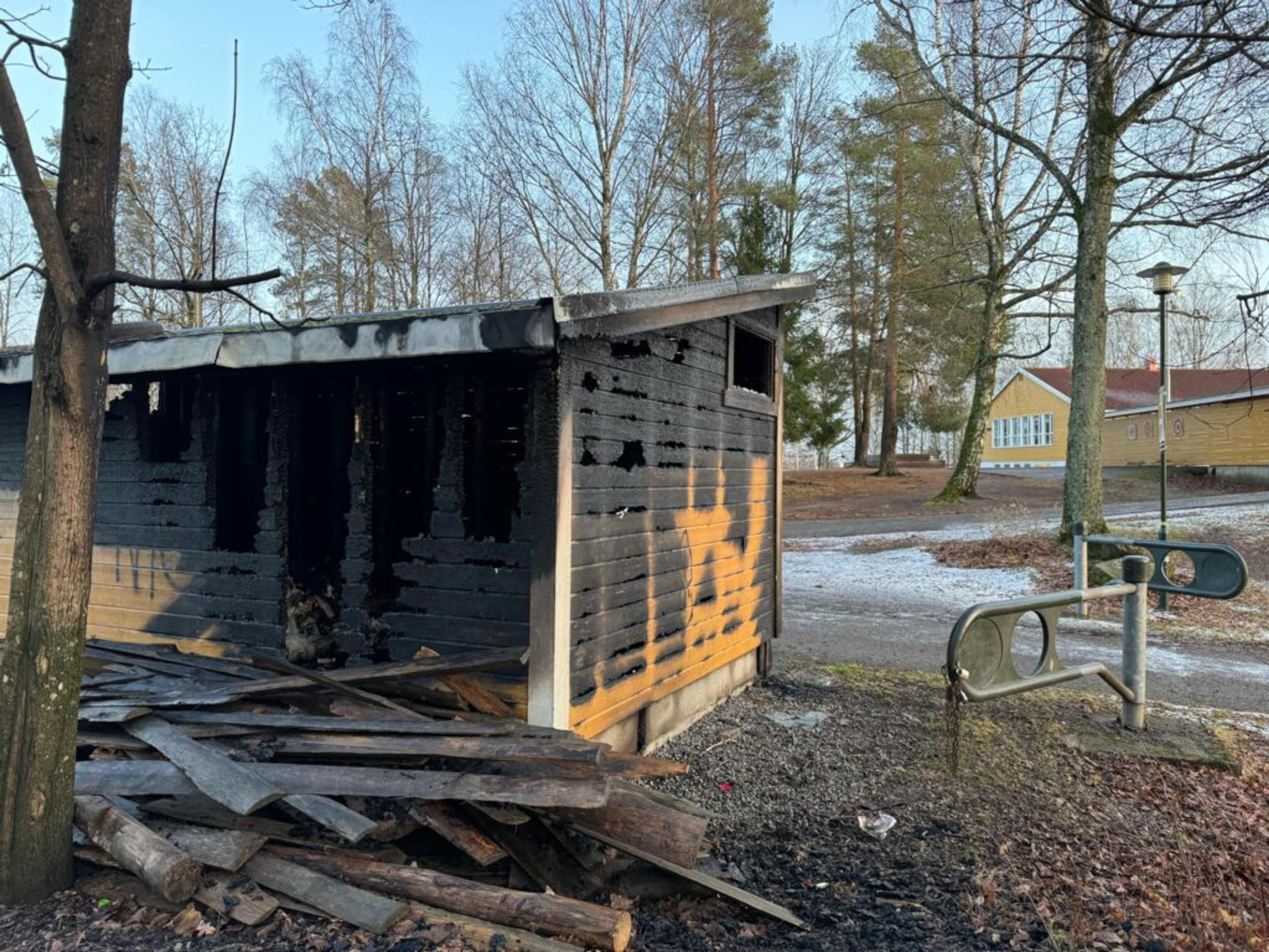 Skuret ble totalskadd. Brann og ambulanse rykket ut til Kirkevoll skole, de reiste igjen etter en times tid.