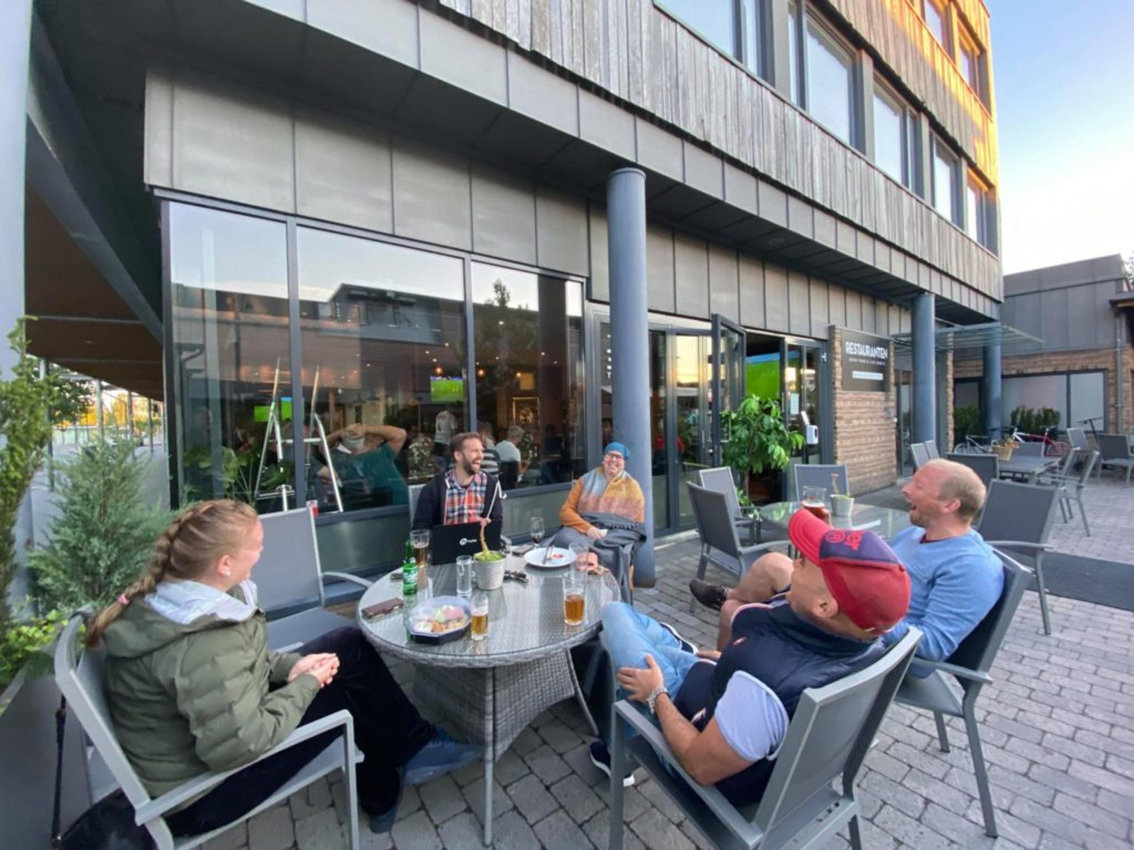 NYTT – OGSÅ UTE: Uteserveringa er blitt ramma inn med blomsterkasser og oppgradert denne sommeren. Foto: Stian Ormestad.