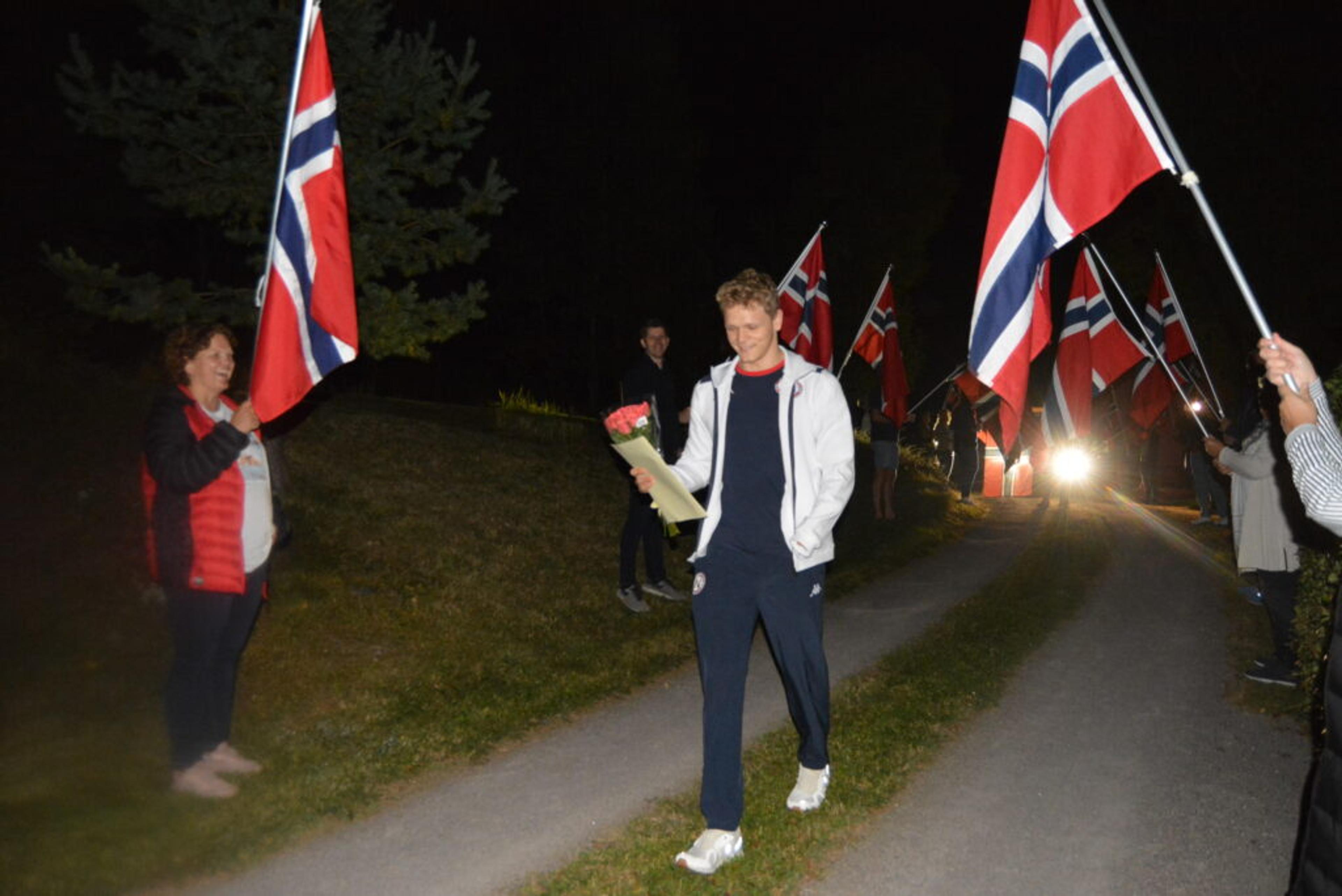 Ordføreren synes Fredrik får en velkomst som er høyst fortjent: – Dette er jo en kjempestor bragd, det du har utført. Utrolig spennende og inspirerende for alle som driver med idrett!