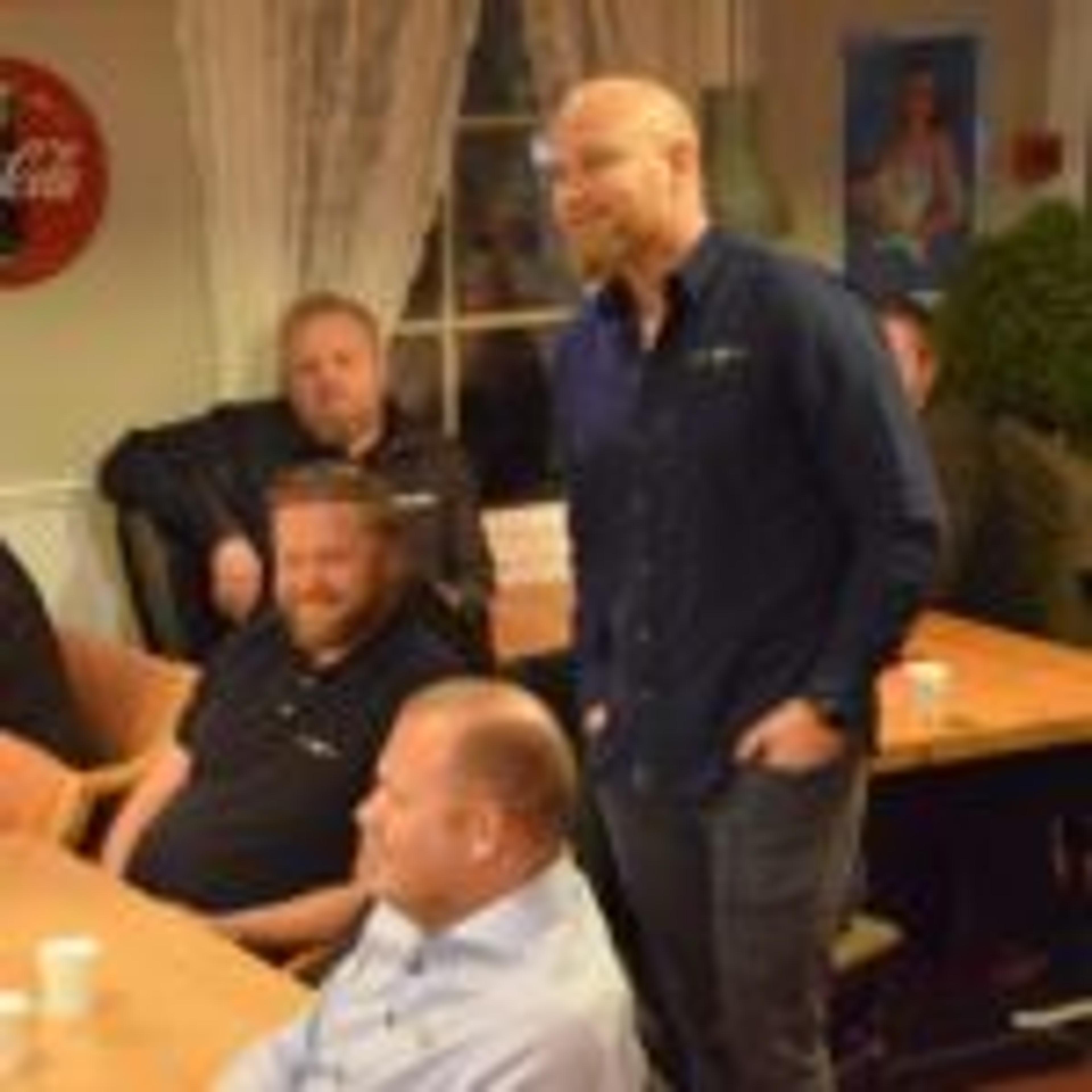IMPONERT HOVEDSPONSOR: Kristoffer Foss forteller om en spennende sesong, fulgt via sosiale medier, på vegne av hovedsponsor Kjell Foss AS. Foto: Stian Ormestad.