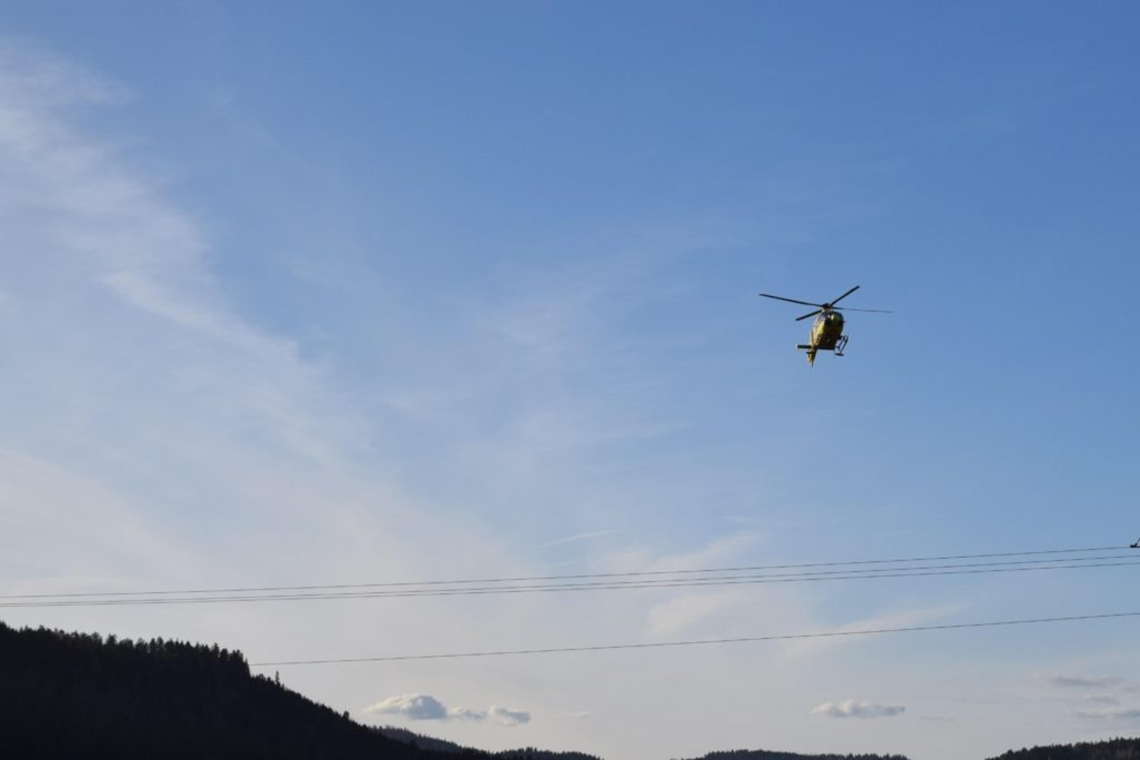REDNINGSHELIKOPTER: Alle nødetater og et redningshelikopter ble sendt til ulykkesstedet i Hvittingfoss, men livet sto ikke til å redde. Foto: Stian Ormestad, ReAvisa.