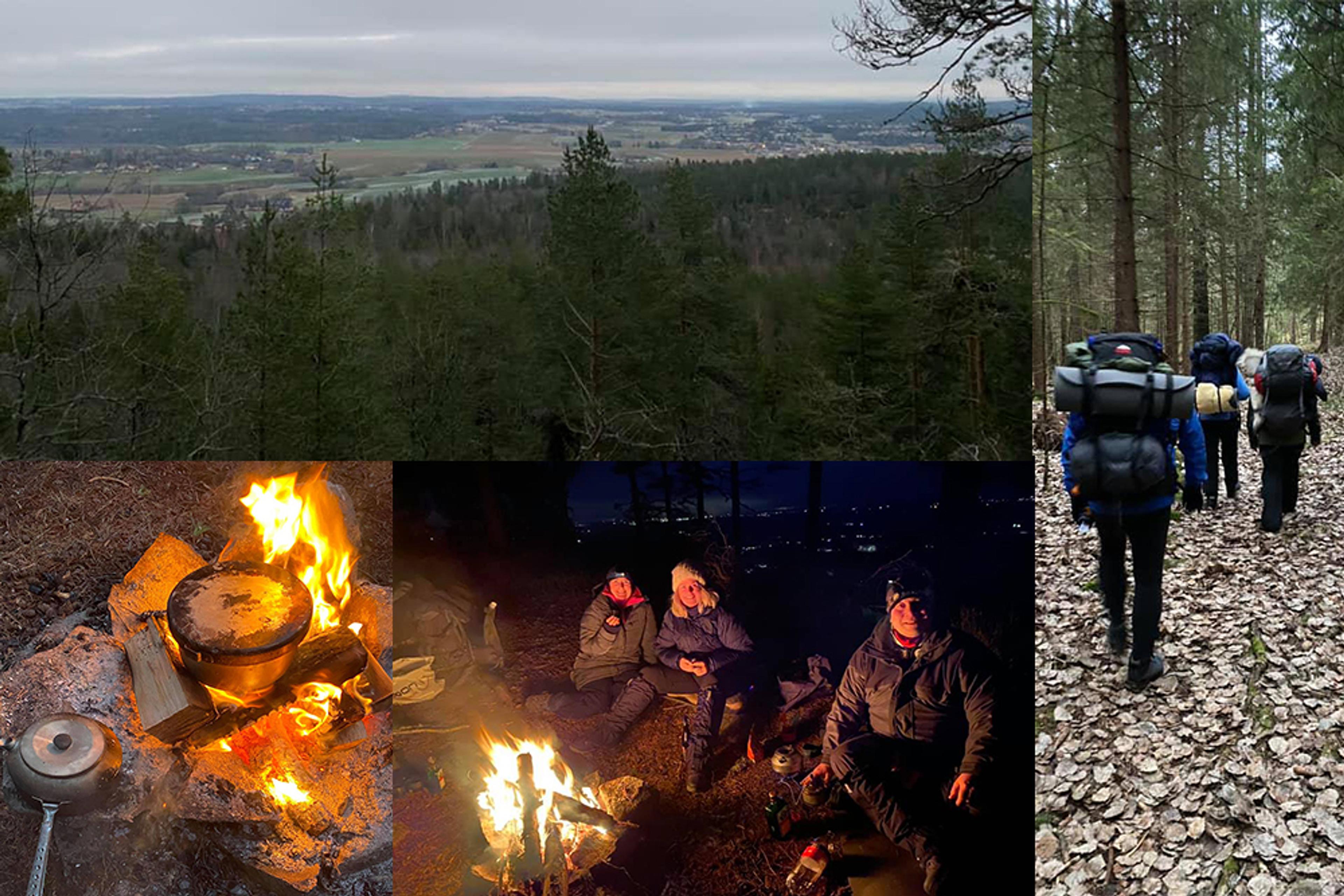 ADVENTSFEIRING UTE I DET FRI: Med minusgrader i lufta, men varme rundt bålet og ikke minst nedi soveposene. Foto: Privat.