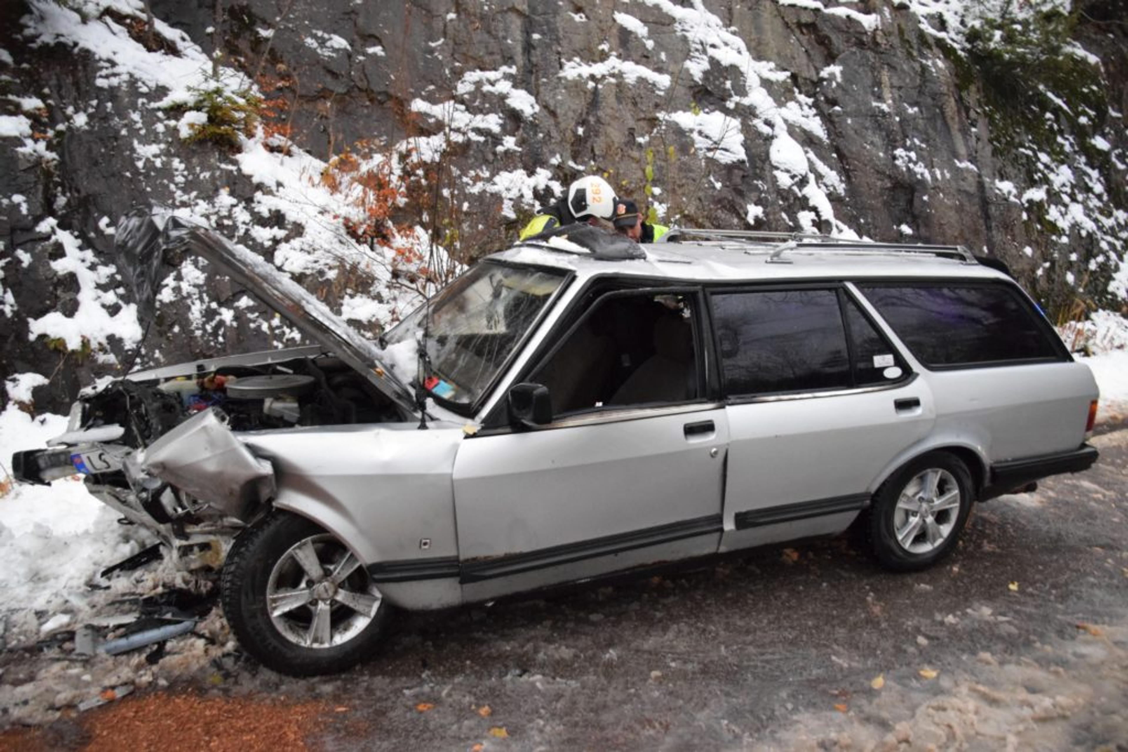 Toyota-en skal ha vært borti autovernet på sin side, før bilen skar over og rett i fronten på den møtende Ford-en.