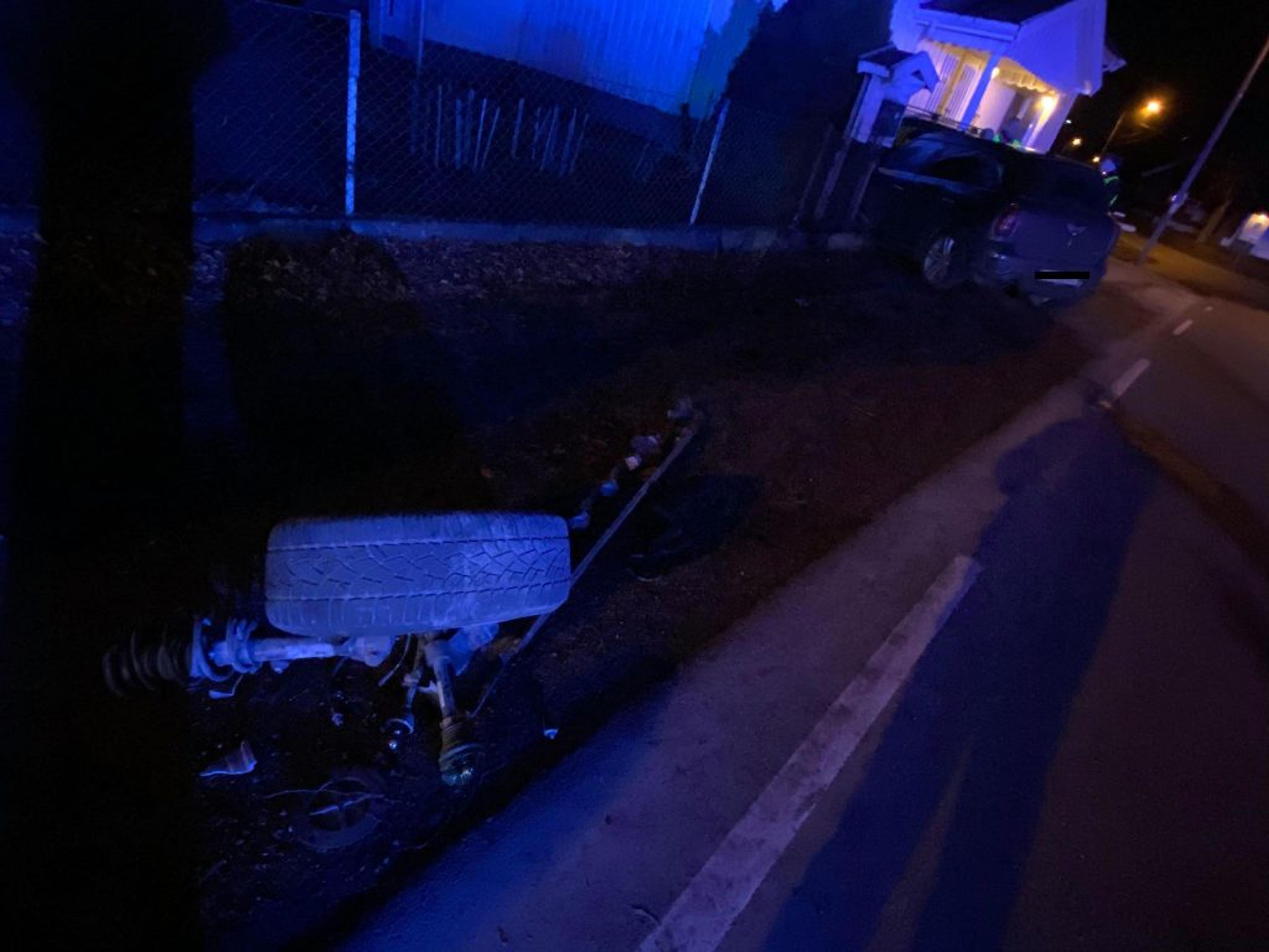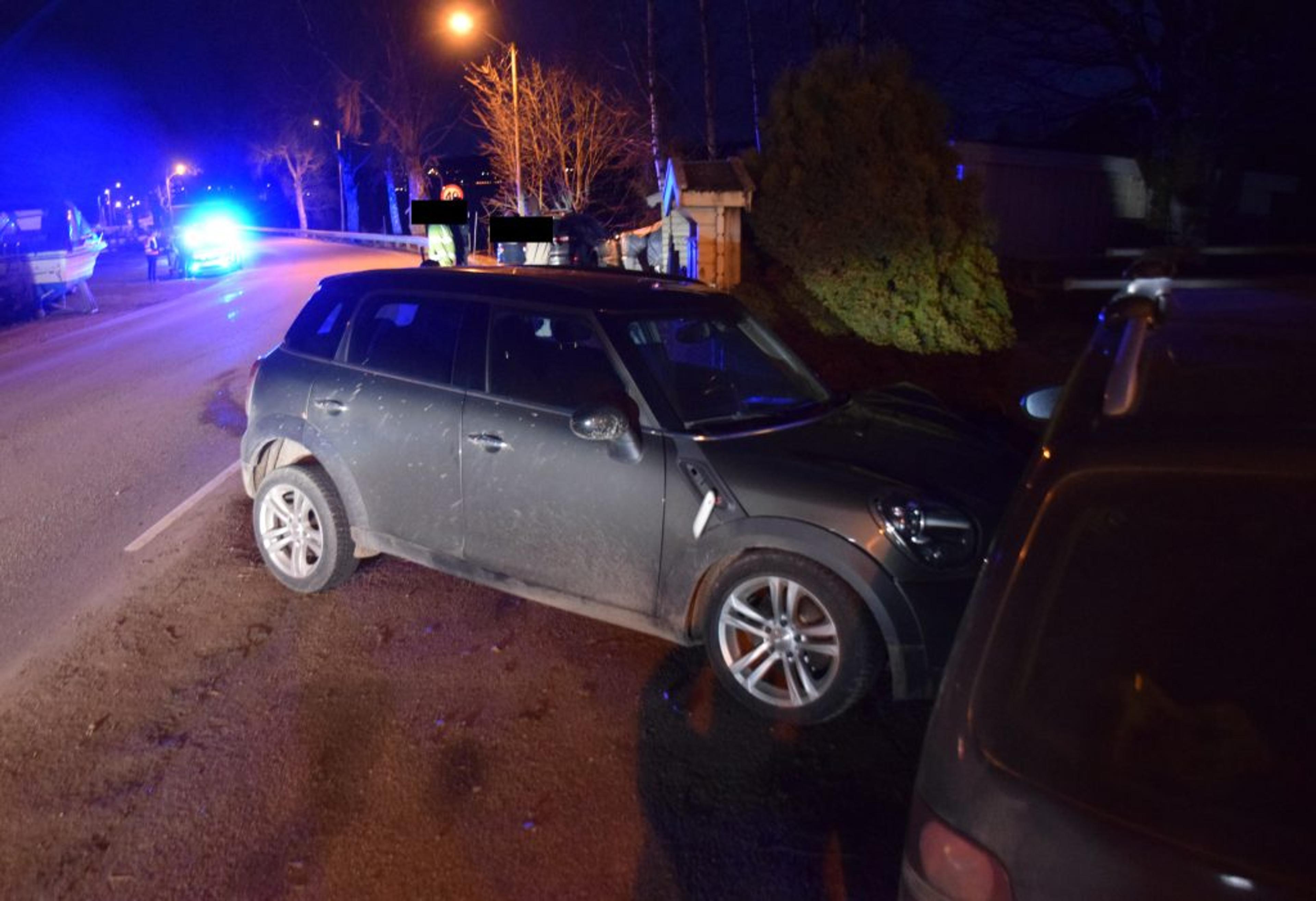 VRAKDELER: Begge bilene har havna i gårdsplassen på andre sida av Ramnes kirke, og treffi biler som sto parkert. Foto: Stian Ormestad.