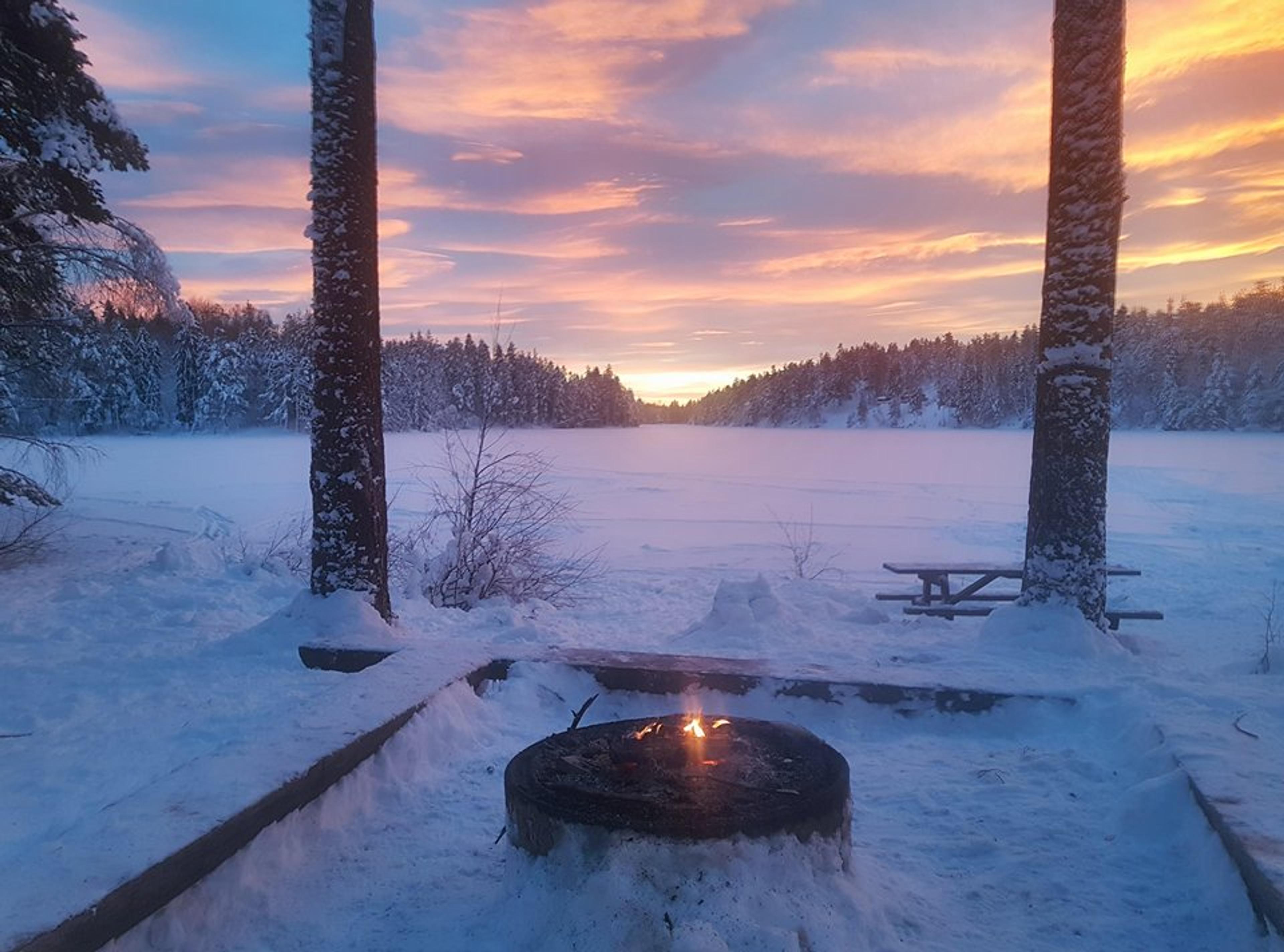 VAKKERT: Her kan du nyte en nygrilla pølse, ved Langevannets islagte bredder. Foto: Henning Larsen.