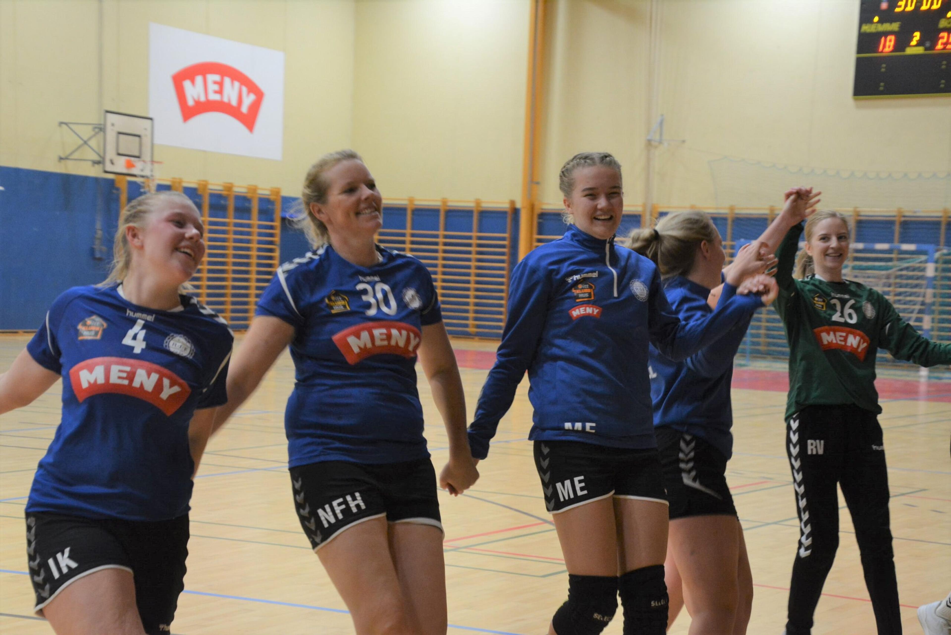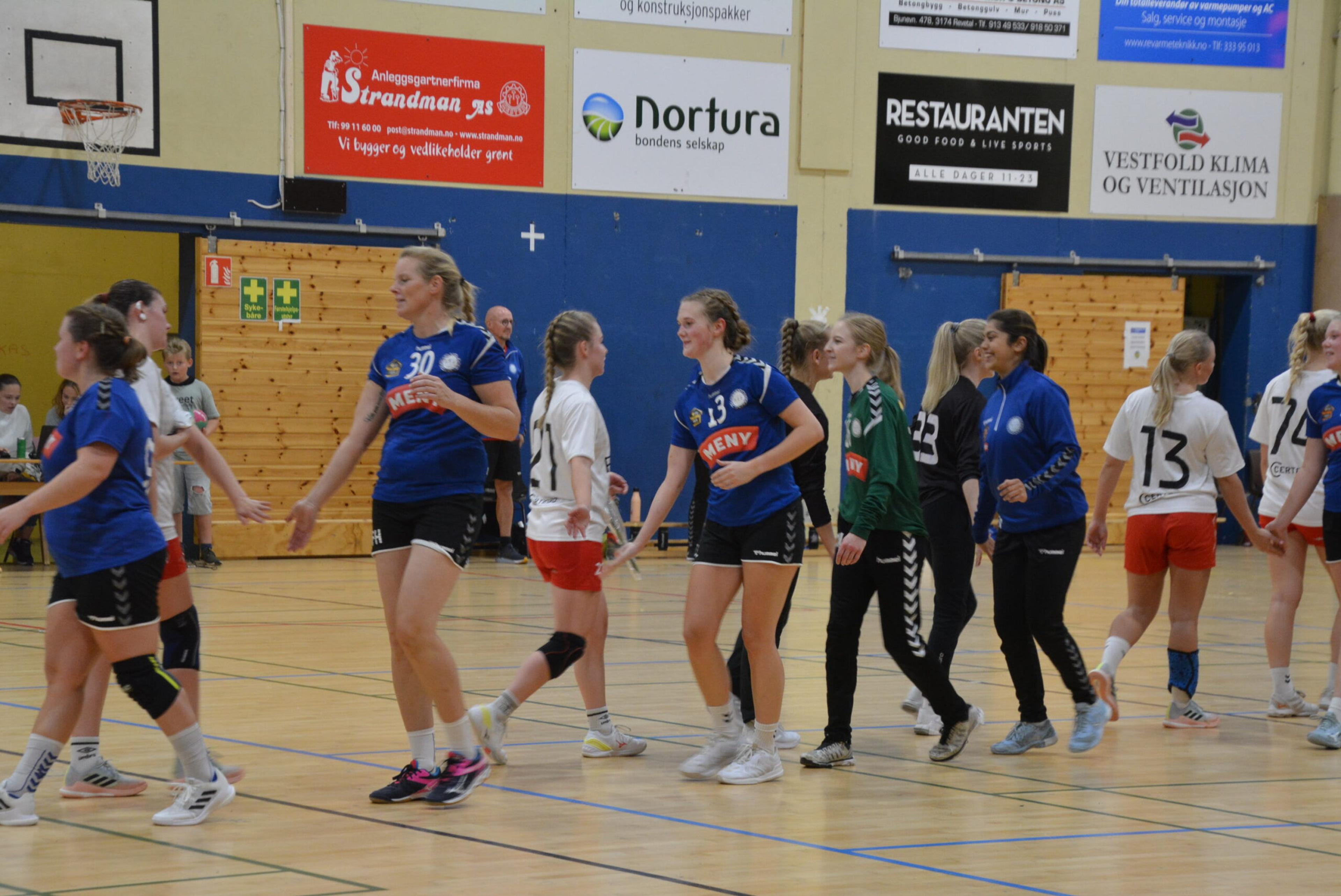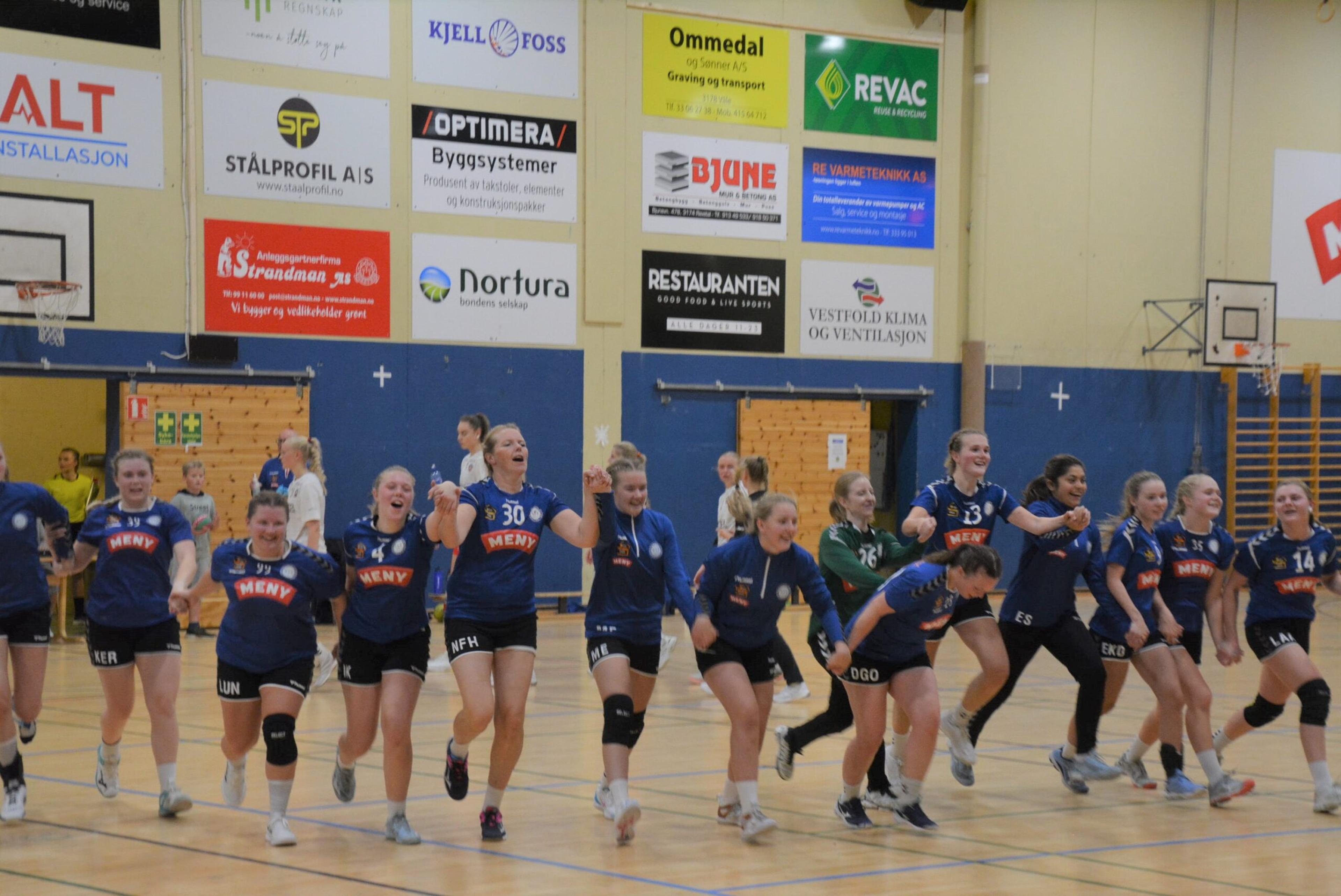 HÅNDBALLGLEDE: Ramnesjentene takker publikum etter kampen. Foto: Lovis Eggum Wallberg.