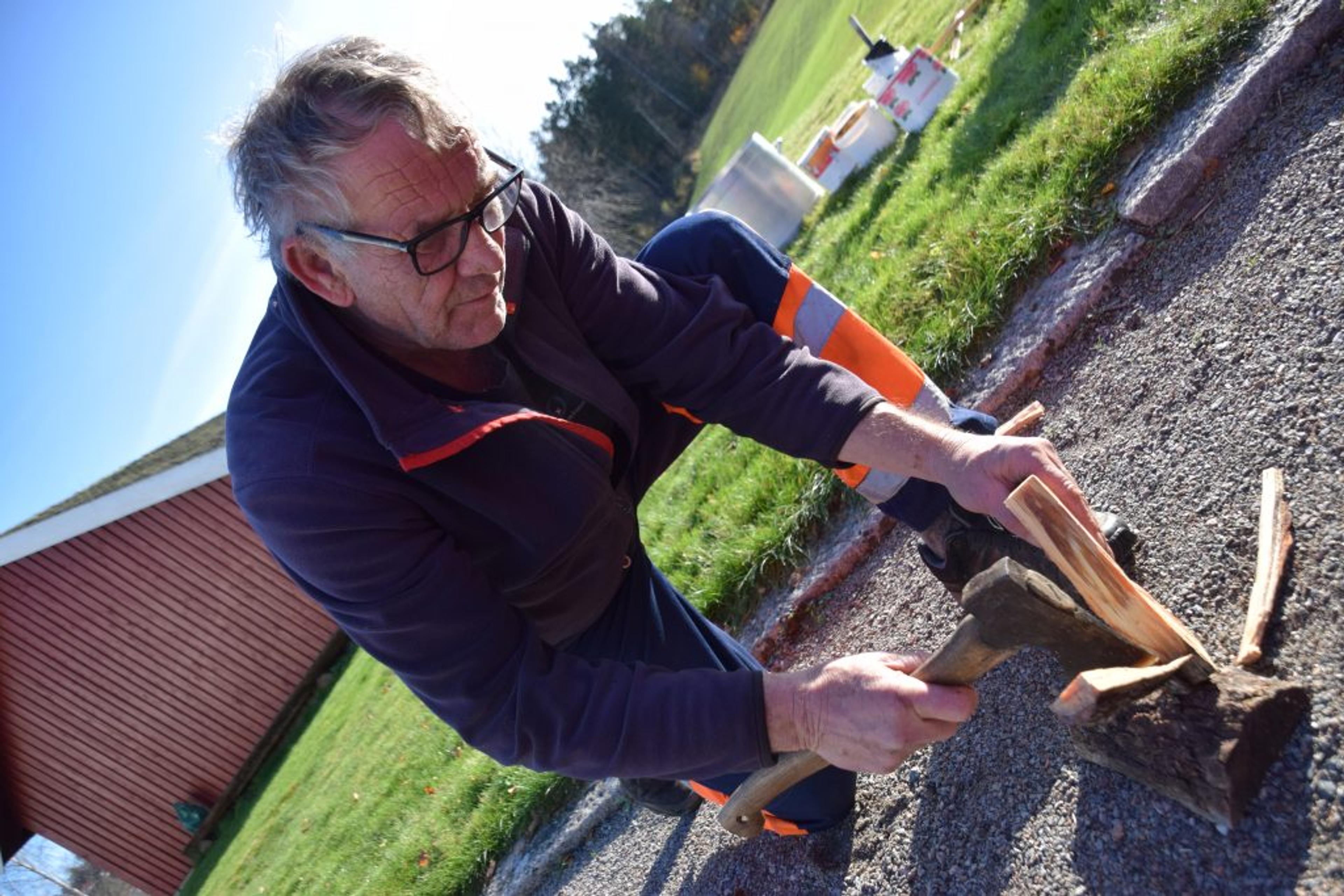 HOGGER FRAM: Roar Mørken hogger opp og viser fram tyri. Foto: Stian Ormestad.
